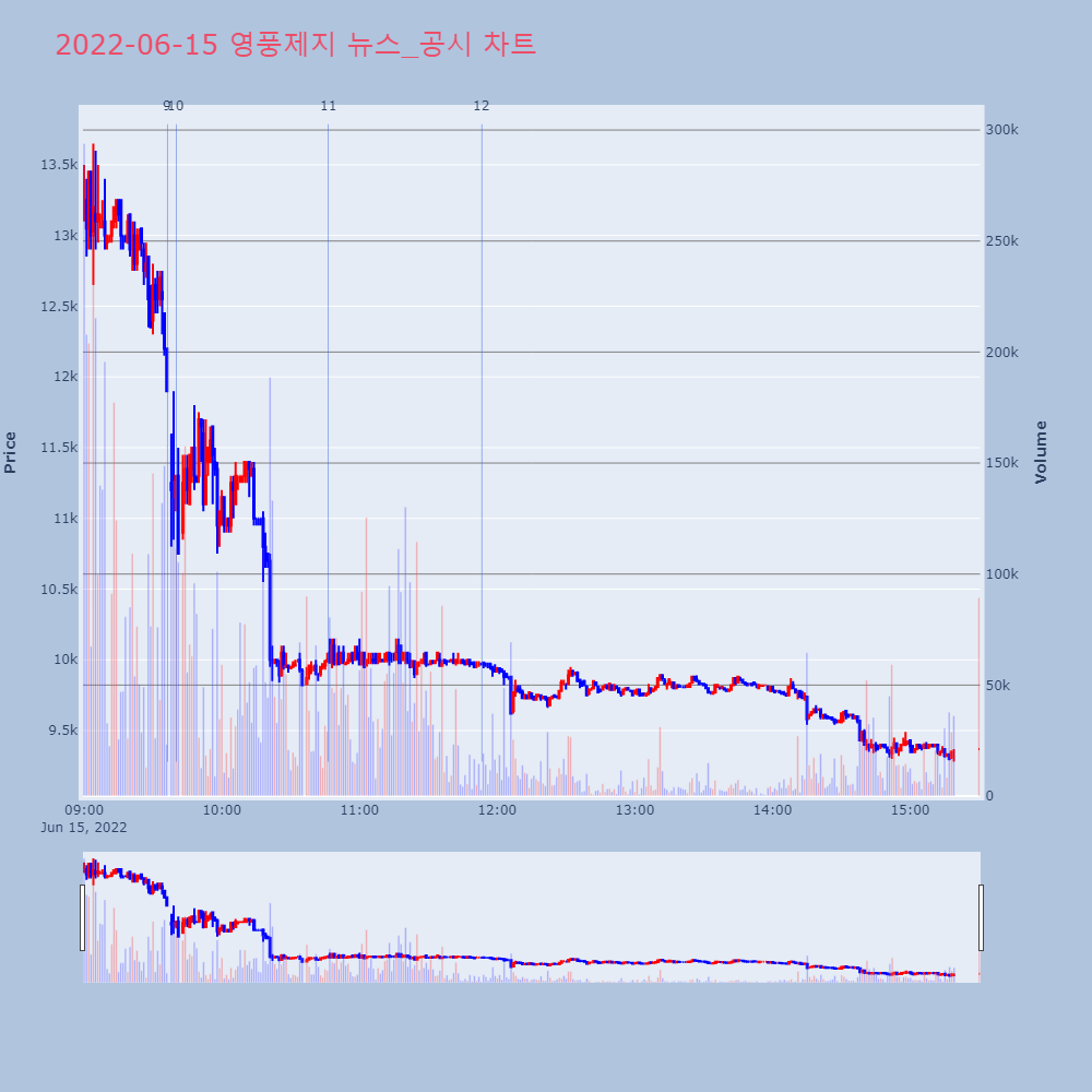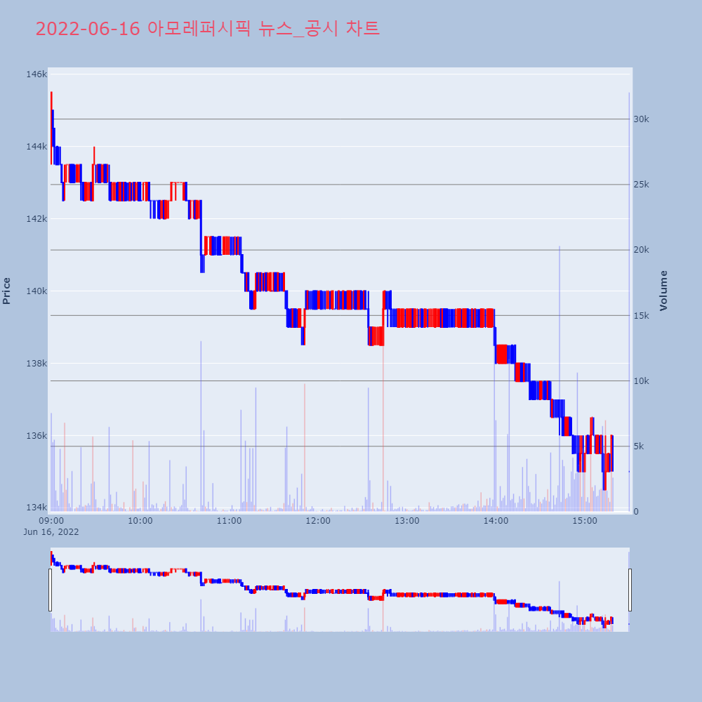| 16 | BTS, 팀활동 중단 선언 쇼크…하이브 주가 20% 넘게 급락BTS가 데뷔 9년 만에 단체활동 중단을 선언했다.1 | 한경/증권 | 하이브 | 2022-06-15 09:14:59 |