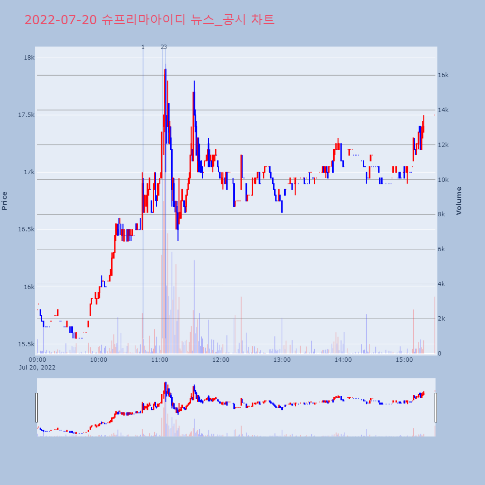 ▷비트코인 2만3,000달러 회복 소식에 가상화폐(비트코인 등) 테마 상승.