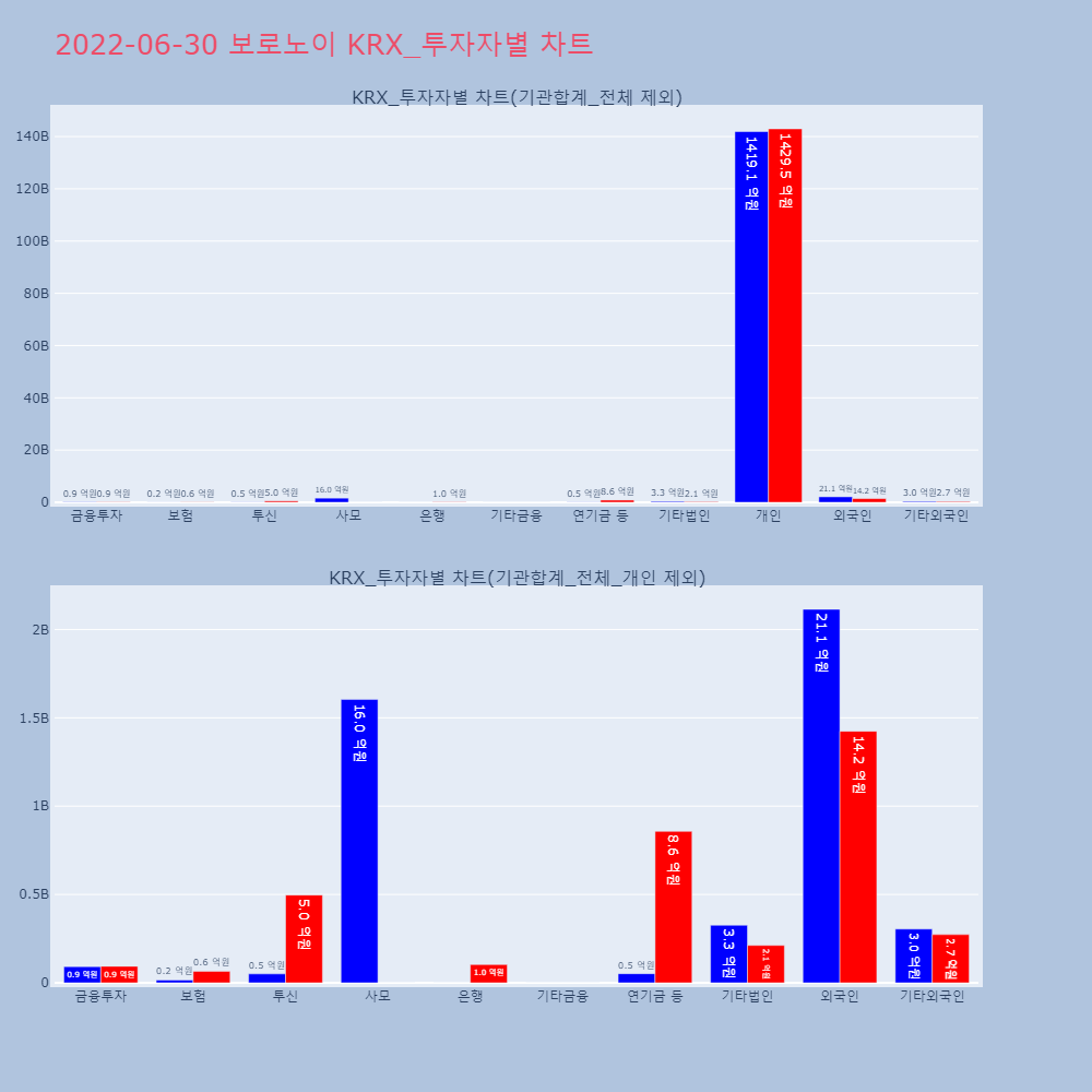 | 투자기관 | 거래량_매도 | 거래량_매수 | 거래량_순매수 | 거래대금_매도 | 거래대금_매수 | 거래대금_순매수 |