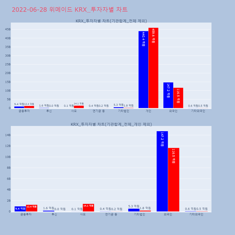 | 투자기관 | 거래량_매도 | 거래량_매수 | 거래량_순매수 | 거래대금_매도 | 거래대금_매수 | 거래대금_순매수 |
