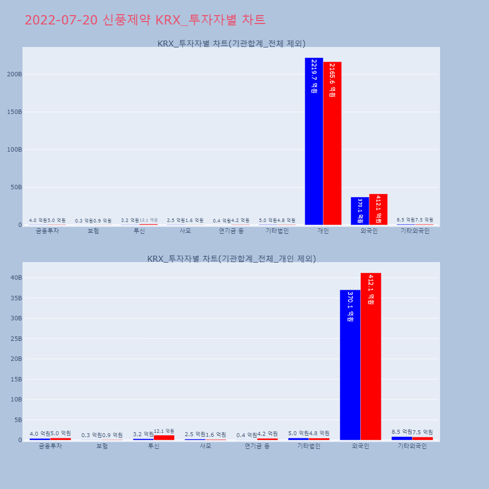 | 투자기관 | 거래량_매도 | 거래량_매수 | 거래량_순매수 | 거래대금_매도 | 거래대금_매수 | 거래대금_순매수 |