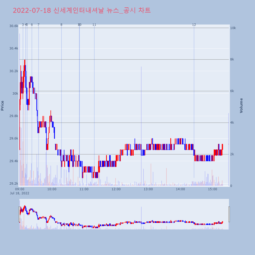 | 13 | [특징주] 신세계인터내셔날, 분기 최대실적 전망에 강세(종합)[특징주] 신세계인터내셔날, 분기 최대실적 전망에 강세 | 연합뉴스 | 신세계인터내셔날 | 2022-07-18 15:46:50 |