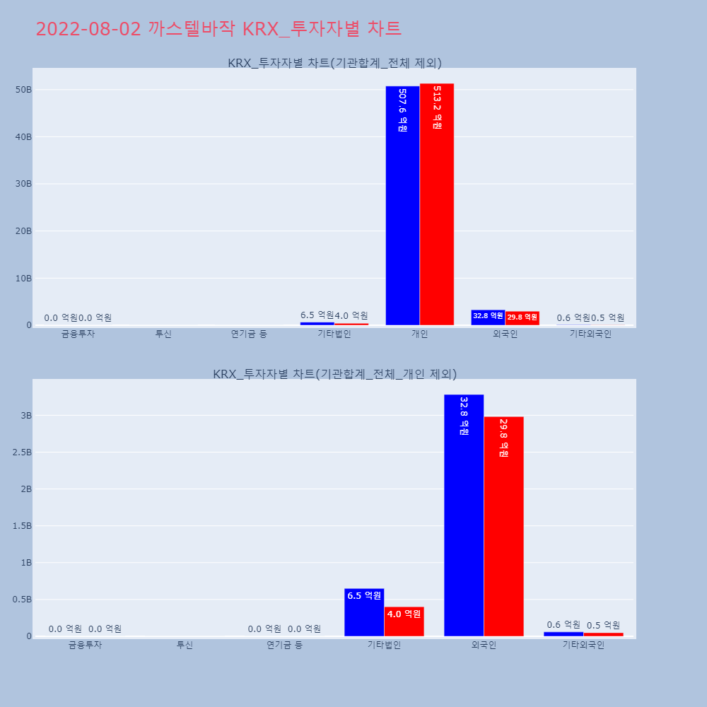 | 투자기관 | 거래량_매도 | 거래량_매수 | 거래량_순매수 | 거래대금_매도 | 거래대금_매수 | 거래대금_순매수 |
