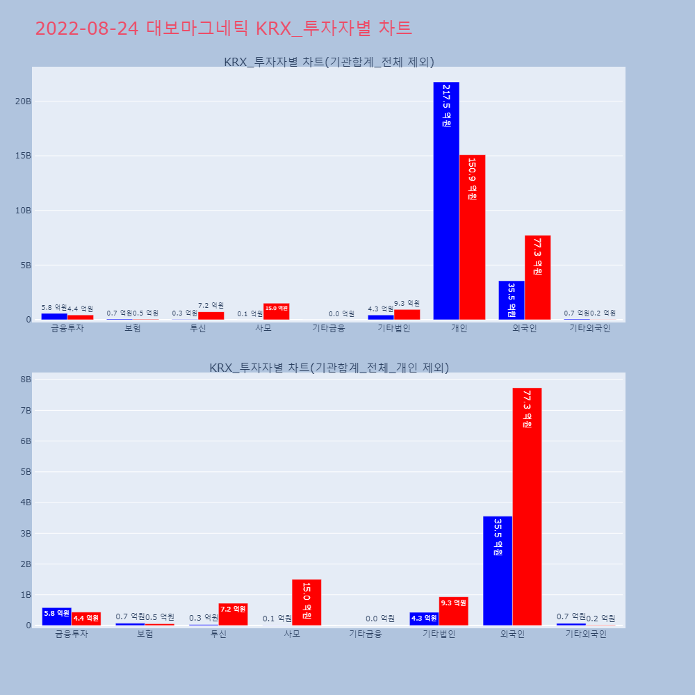 | 개인 | 362,967 | 252,127 | -110,840 | 21,753,033,300 | 15,091,760,500 | -6,661,272,800 |