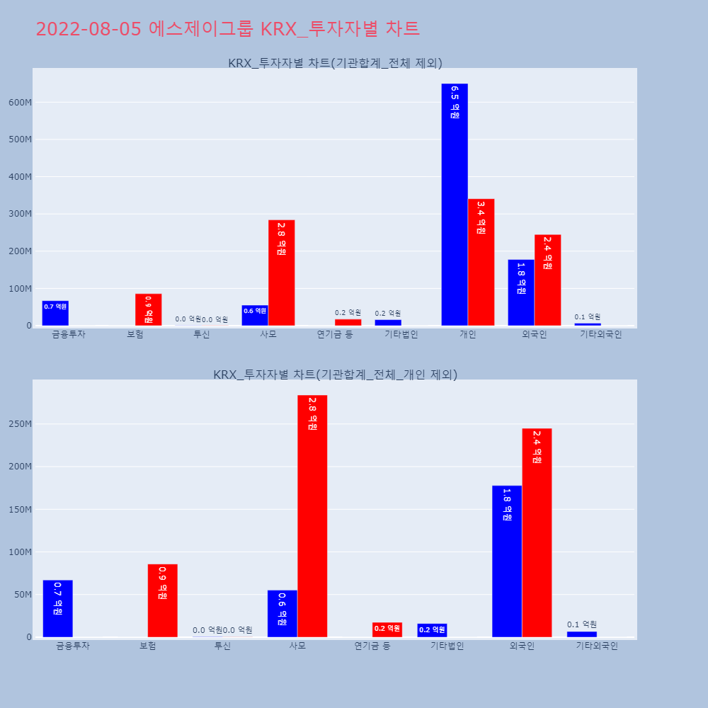| 투자기관 | 거래량_매도 | 거래량_매수 | 거래량_순매수 | 거래대금_매도 | 거래대금_매수 | 거래대금_순매수 |