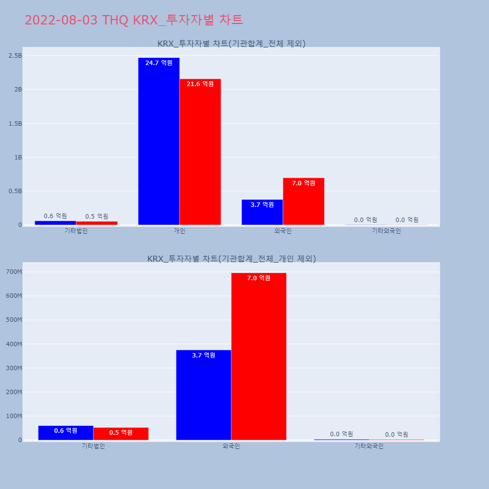 | 투자기관 | 거래량_매도 | 거래량_매수 | 거래량_순매수 | 거래대금_매도 | 거래대금_매수 | 거래대금_순매수 |