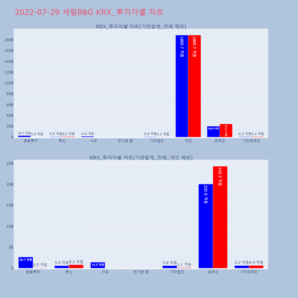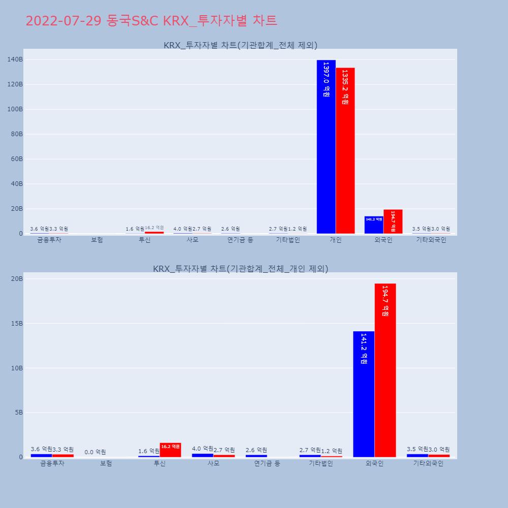 | 투자기관 | 거래량_매도 | 거래량_매수 | 거래량_순매수 | 거래대금_매도 | 거래대금_매수 | 거래대금_순매수 |