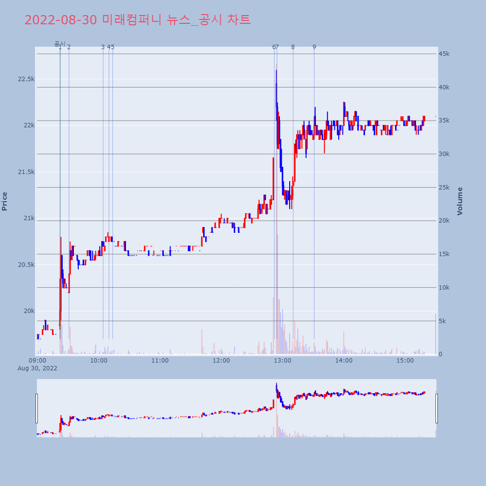 | 6 | 미래컴퍼니, +9.39% VI 발동미래컴퍼니가 VI가 발동했다. 전일 대비 9.39% 상 | 조선경제 | 미래컴퍼니 | 2022-08-30 12:51:56 |