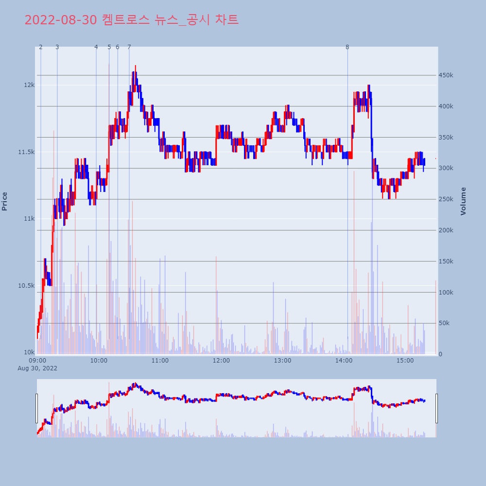 | 9 | [장초반 인기 검색 종목 PICK5] - 한국맥널티, 앱클론, 켐트로스... 최적의 매매타이밍을 실시간으로 전송하여 투자자들에게 도 | 파이낸셜 | 세아특수강 | 2022-08-30 10:18:39 |