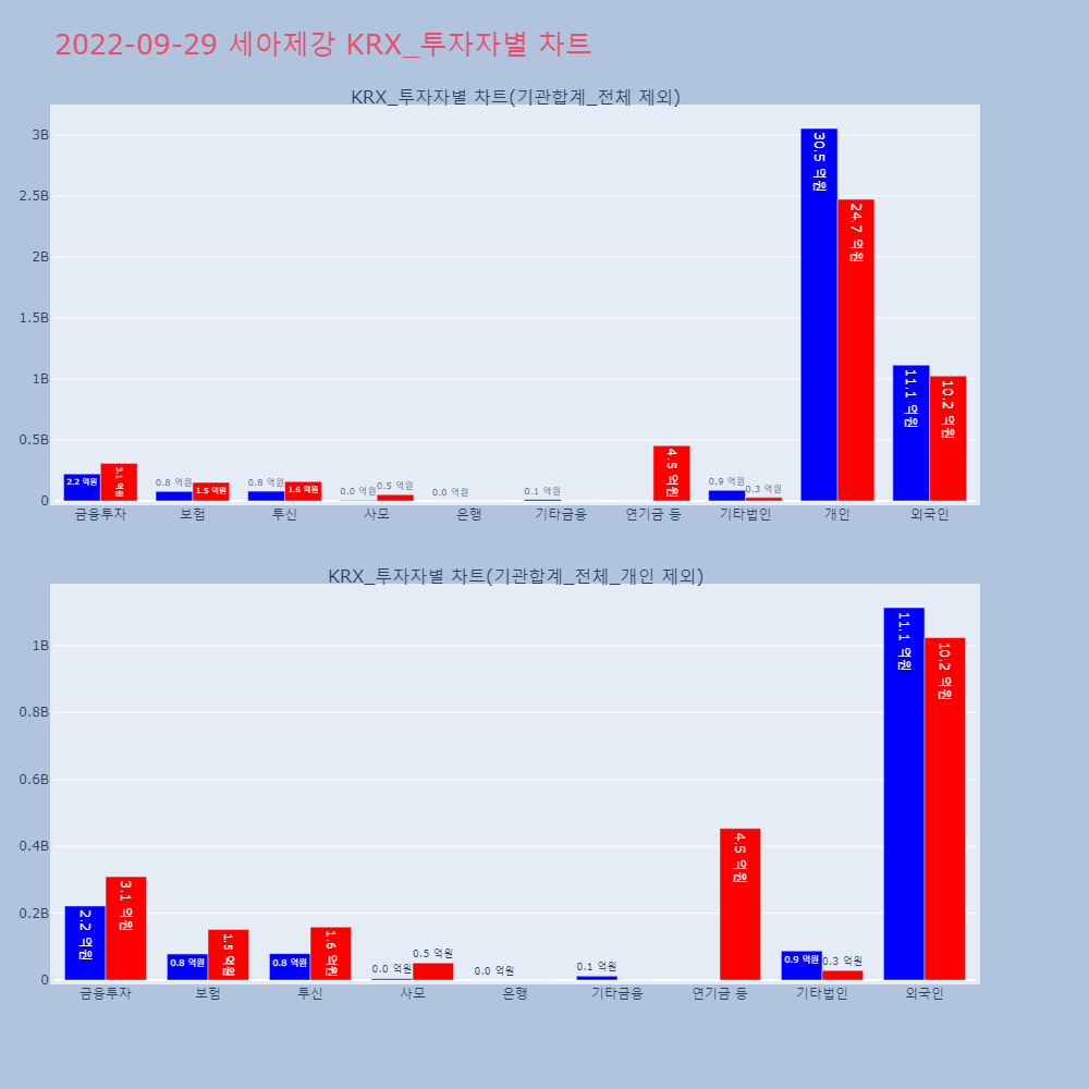 | 외국인 | 566,769 | 561,509 | -5,260 | 11,130,601,250 | 10,878,029,400 | -252,571,850 |