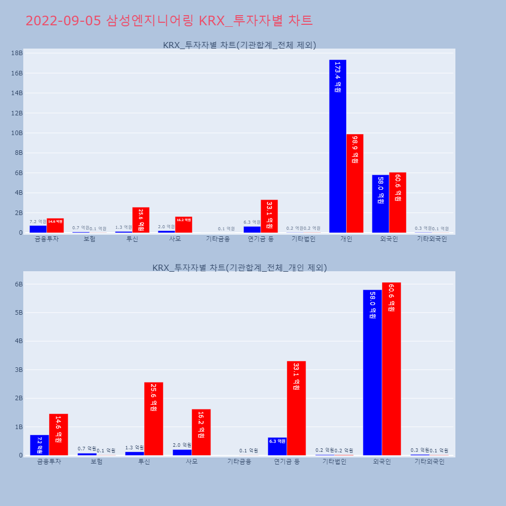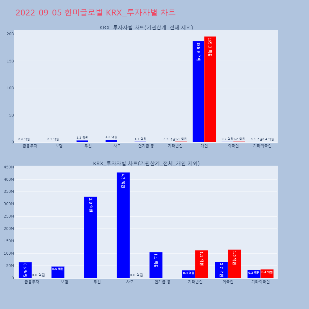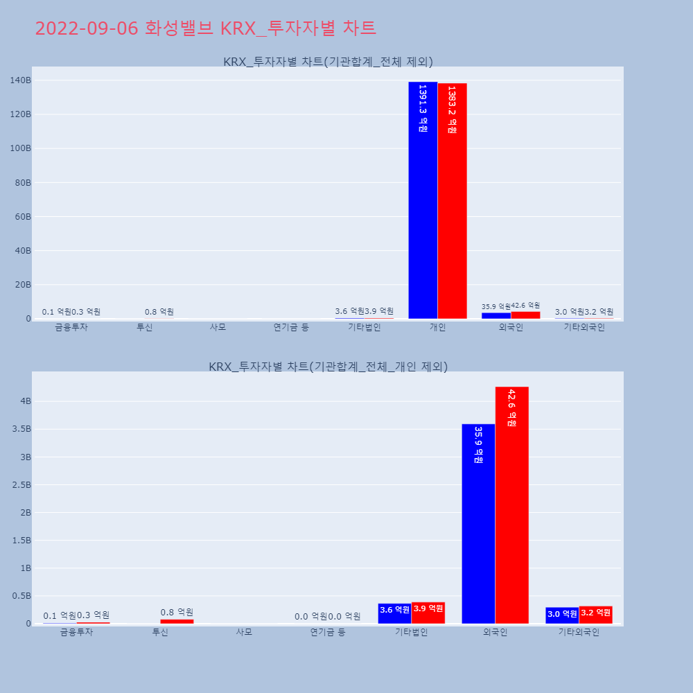 | 투자기관 | 거래량_매도 | 거래량_매수 | 거래량_순매수 | 거래대금_매도 | 거래대금_매수 | 거래대금_순매수 |