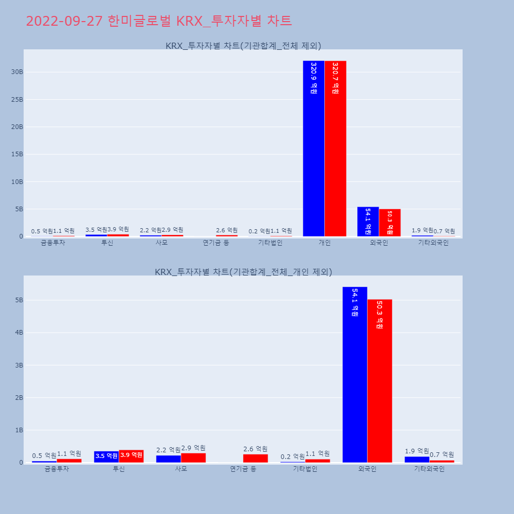 | 투자기관 | 거래량_매도 | 거래량_매수 | 거래량_순매수 | 거래대금_매도 | 거래대금_매수 | 거래대금_순매수 |