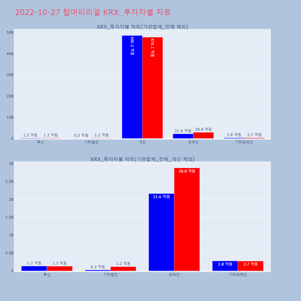 | 투자기관 | 거래량_매도 | 거래량_매수 | 거래량_순매수 | 거래대금_매도 | 거래대금_매수 | 거래대금_순매수 |