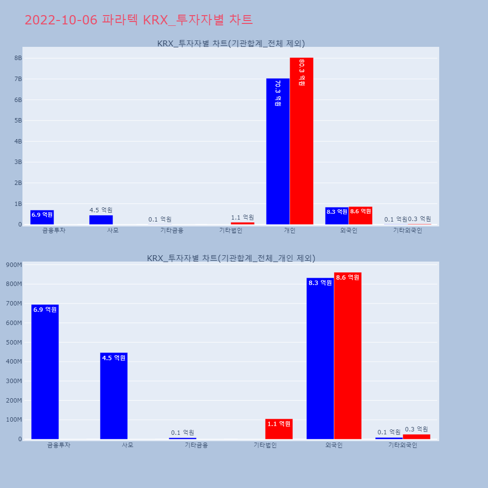 | 투자기관 | 거래량_매도 | 거래량_매수 | 거래량_순매수 | 거래대금_매도 | 거래대금_매수 | 거래대금_순매수 |