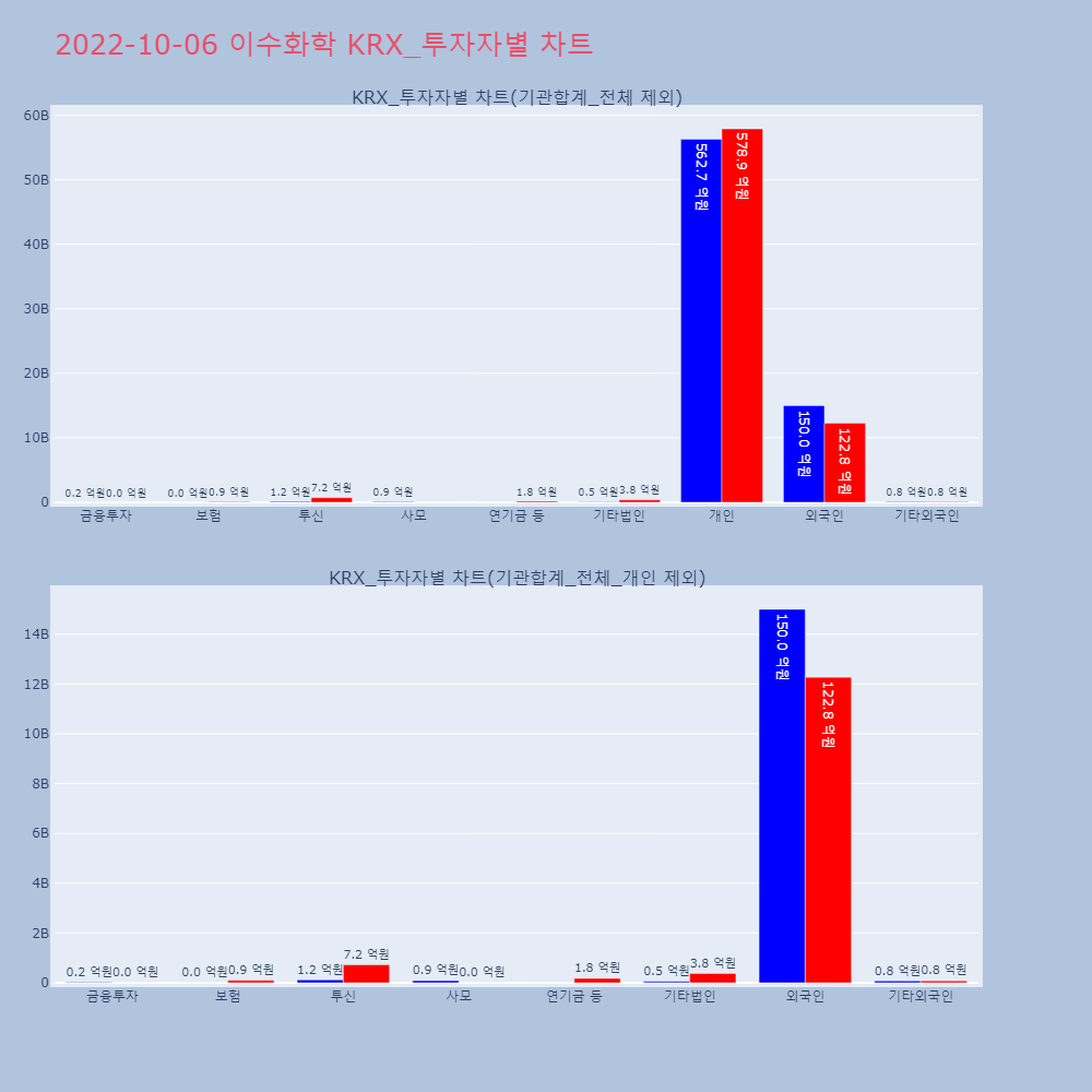 | 투자기관 | 거래량_매도 | 거래량_매수 | 거래량_순매수 | 거래대금_매도 | 거래대금_매수 | 거래대금_순매수 |