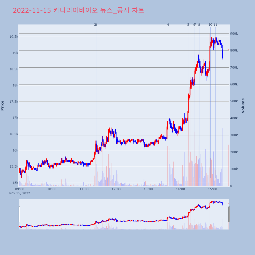 | 9 | 카나리아바이오, +29.80% 상한가카나리아바이오가 상한가를 기록했다. 전일 대비 29.8 | 조선경제 | 카나리아바이오 | 2022-11-15 14:55:14 |