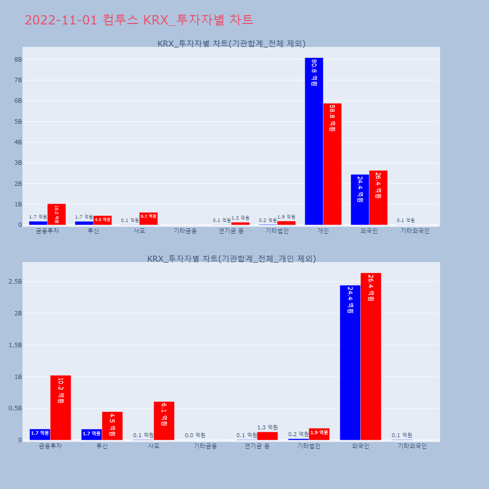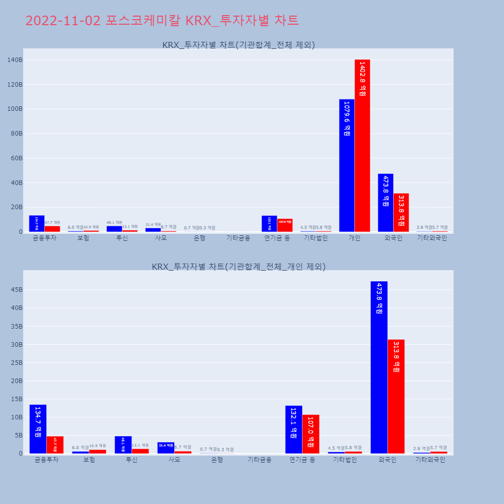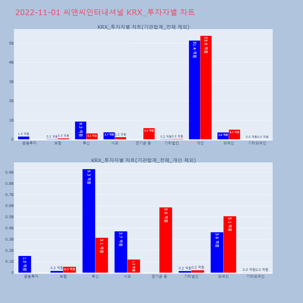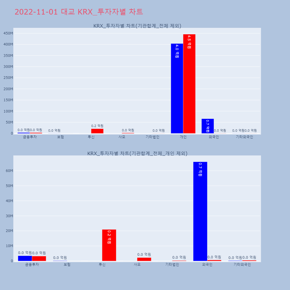 | 투자기관 | 거래량_매도 | 거래량_매수 | 거래량_순매수 | 거래대금_매도 | 거래대금_매수 | 거래대금_순매수 |
