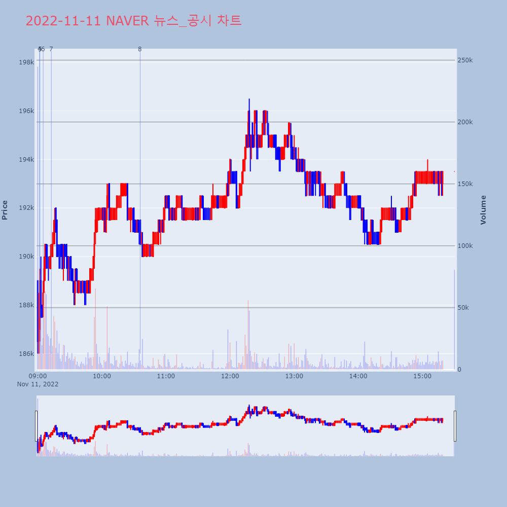 | 47 | 11일, 기관 거래소에서 삼성전자(+4.14%), NAVER(+9.94%) 등 순매수기관 투자자는 11일 거래소에서 삼성전자, NAVER | 한경/증권 | 삼성전자 | 2022-11-11 18:35:16 |