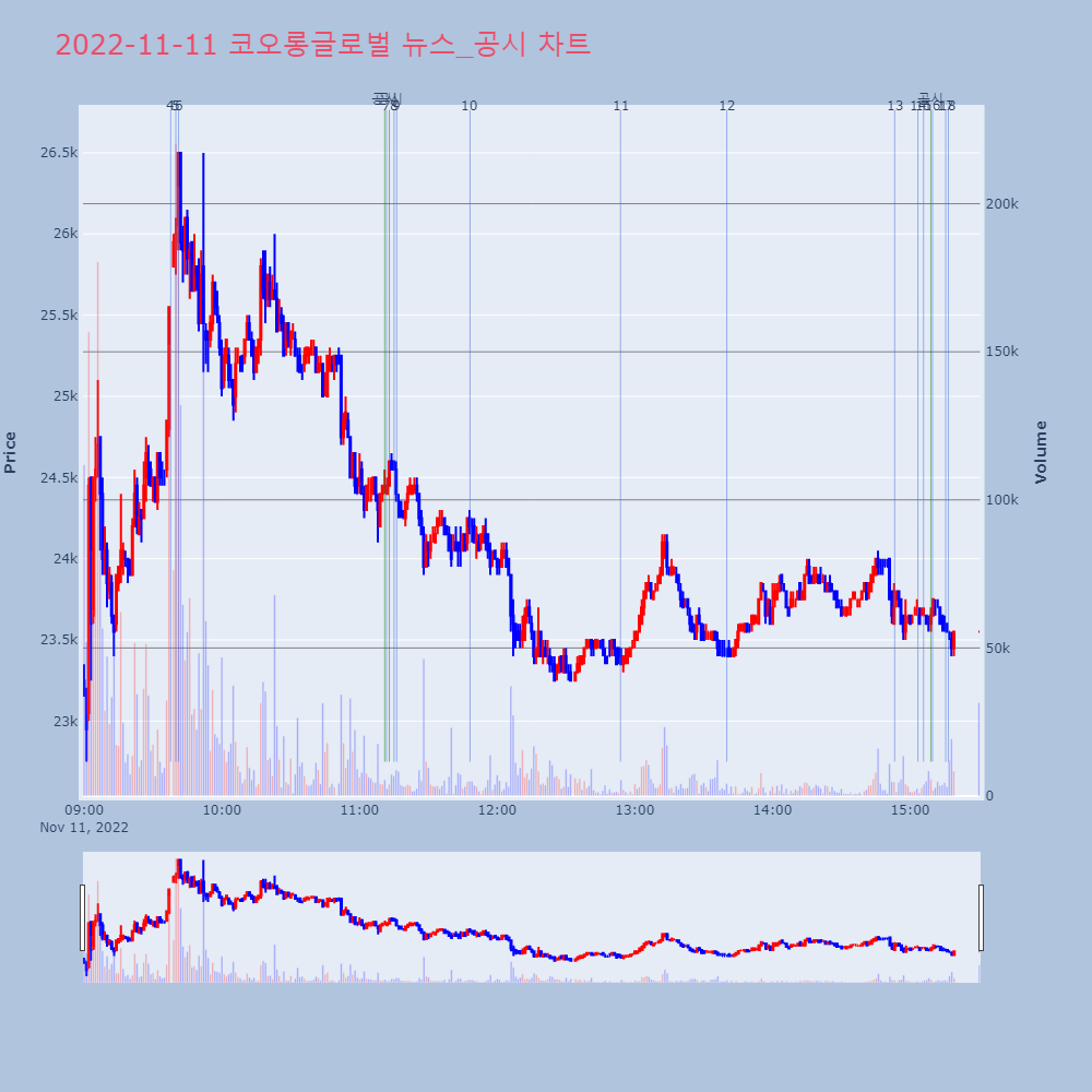 | 20 | [업앤다운]건설주 상승…현대건설 코오롱글로벌 ‘52주최고가’↑ 제목 :[업앤다운]건설주 상승…현대건설 코오롱글로벌 ‘ | 인포스탁 | 코오롱글로벌 | 2022-11-11 16:15:32 |
