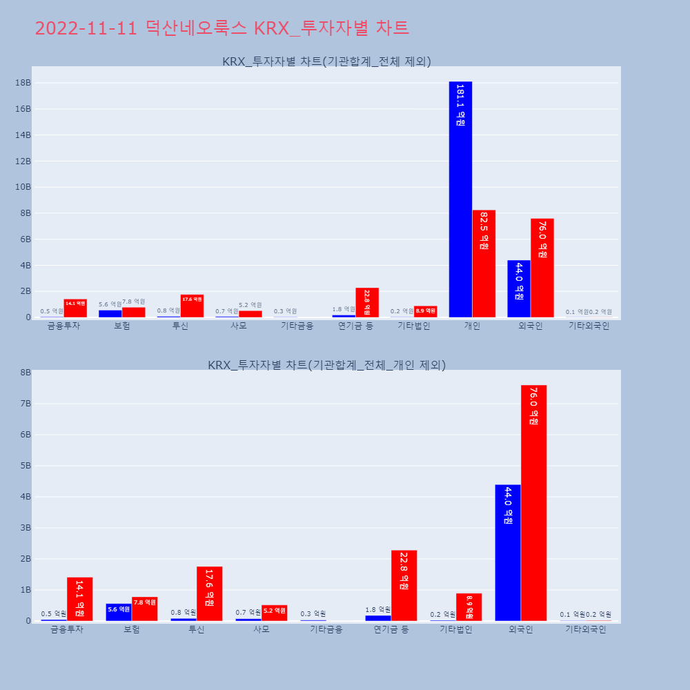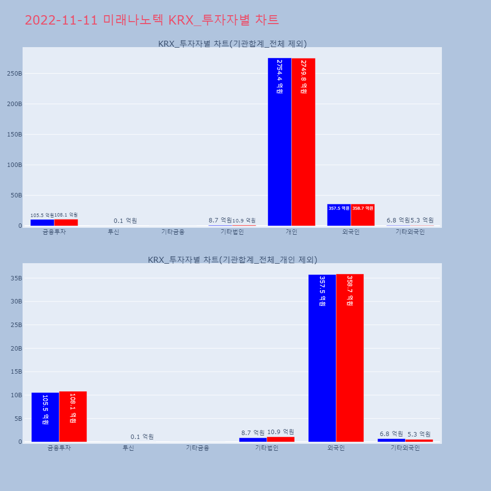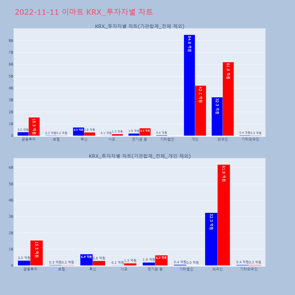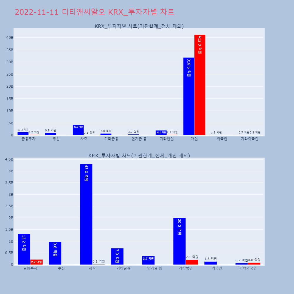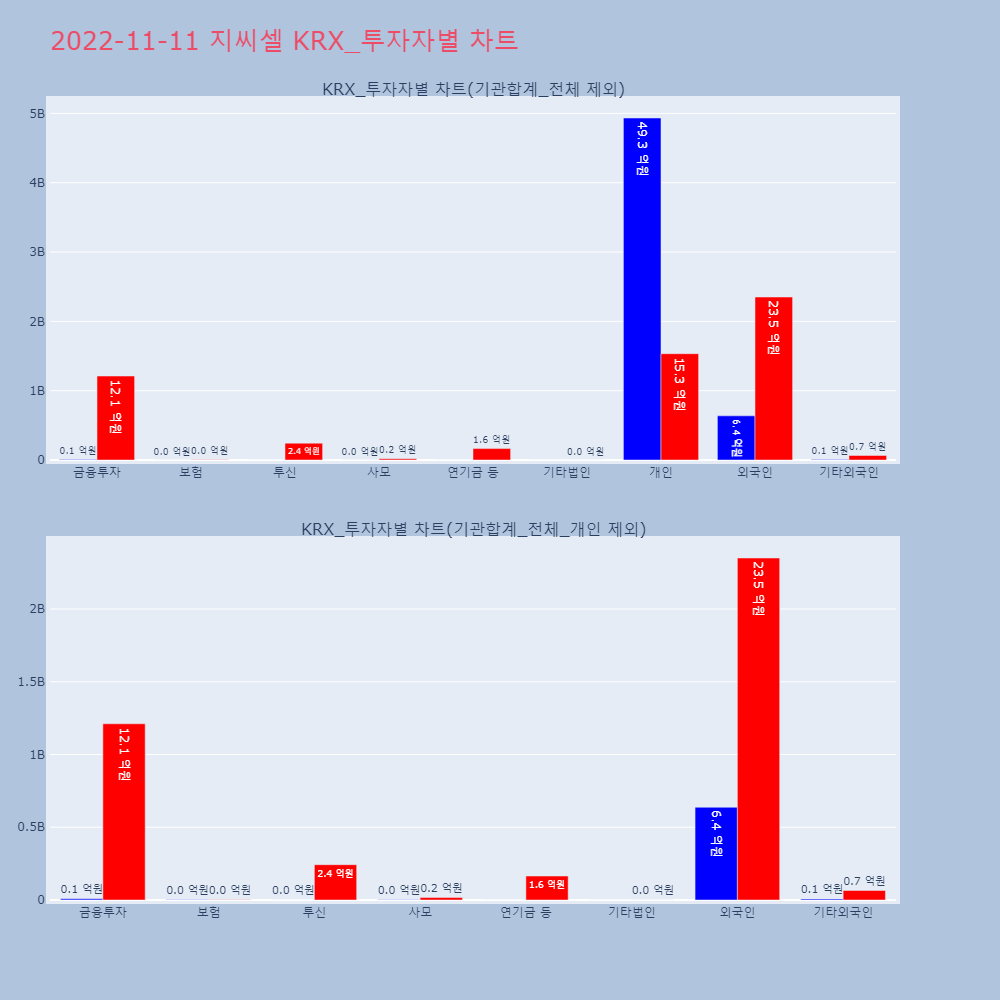 | 투자기관 | 거래량_매도 | 거래량_매수 | 거래량_순매수 | 거래대금_매도 | 거래대금_매수 | 거래대금_순매수 |