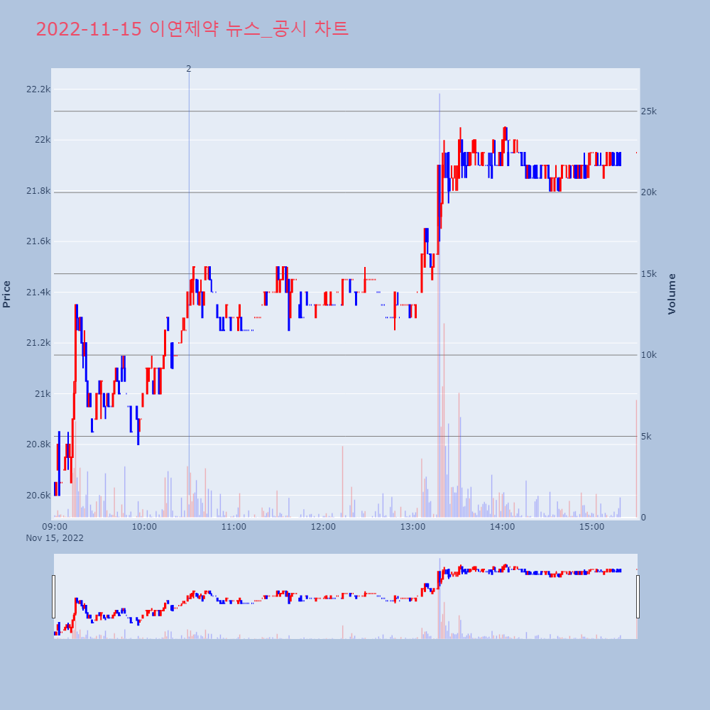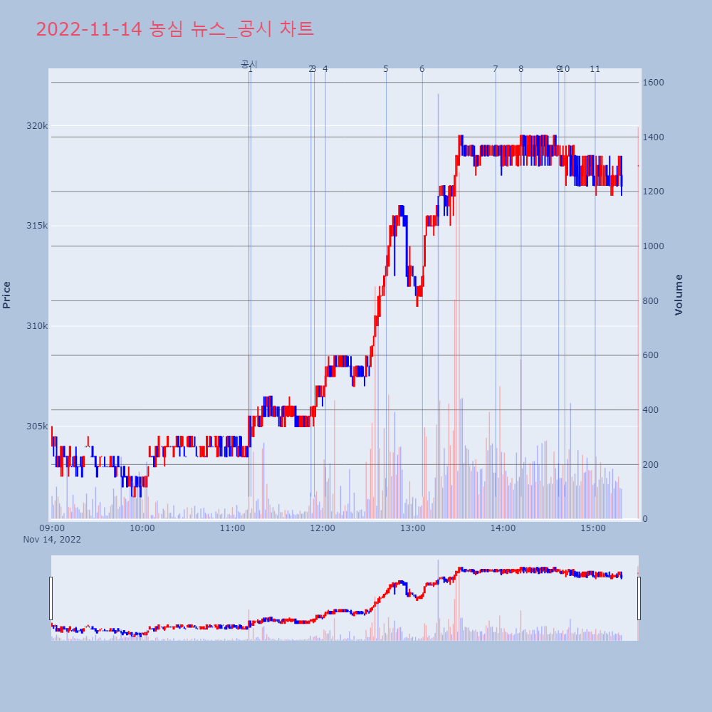 | 11 | [강세 토픽] 배합사료·첨가제 테마, 카나리아바이오 +28.15%, 한일사료 +4[배합사료·첨가제] 테마가 강세다. 전일 대비 4.56 | 조선경제 | 카나리아바이오 | 2022-11-15 15:05:24 |