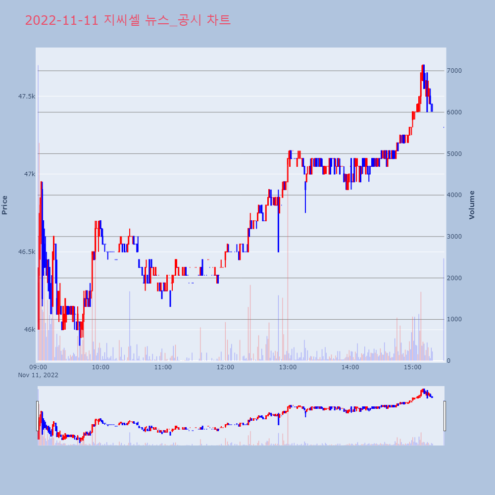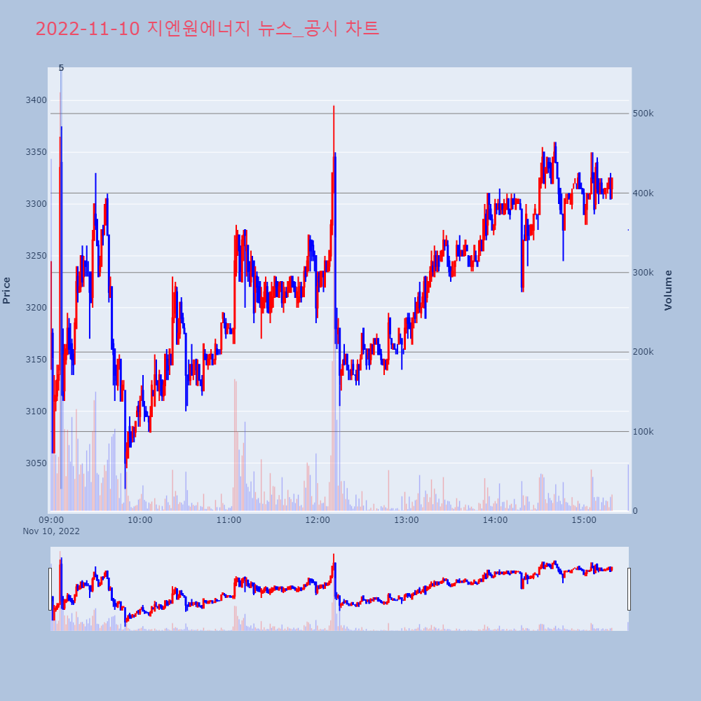 | 5 | 지엔원에너지, +12.31% VI 발동지엔원에너지가 VI가 발동했다. 전일 대비 12.31% | 조선경제 | 지엔원에너지 | 2022-11-14 09:30:37 |
