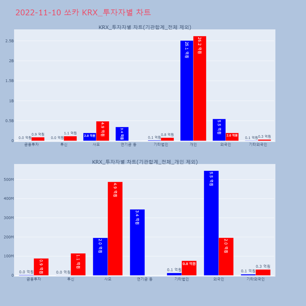 | 투자기관 | 거래량_매도 | 거래량_매수 | 거래량_순매수 | 거래대금_매도 | 거래대금_매수 | 거래대금_순매수 |