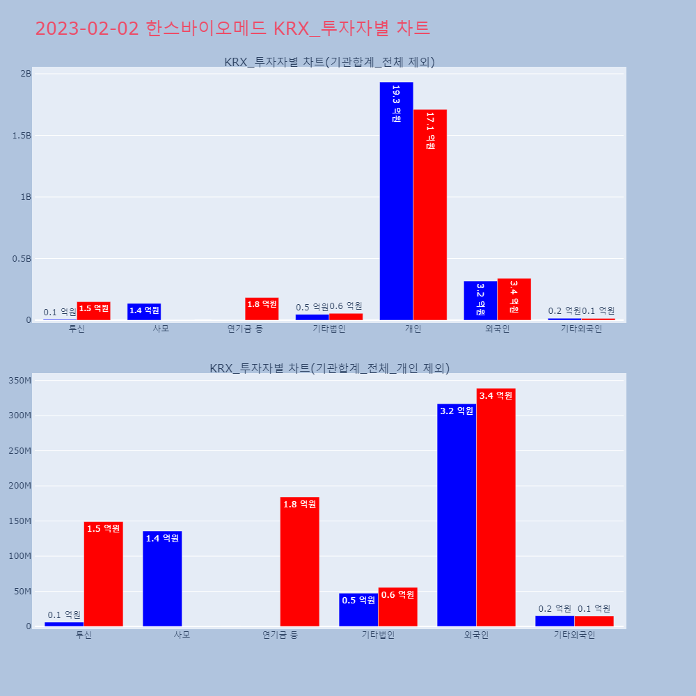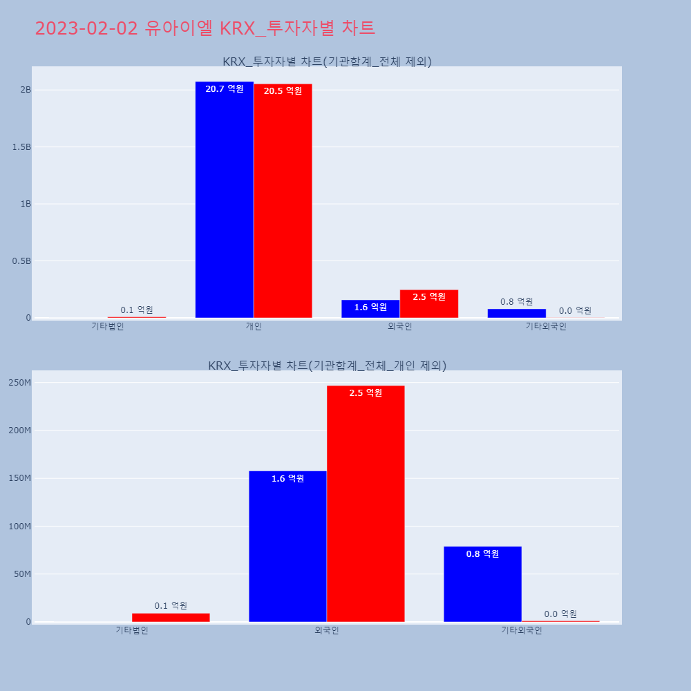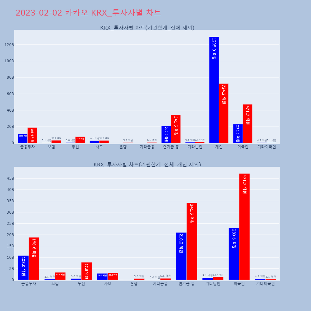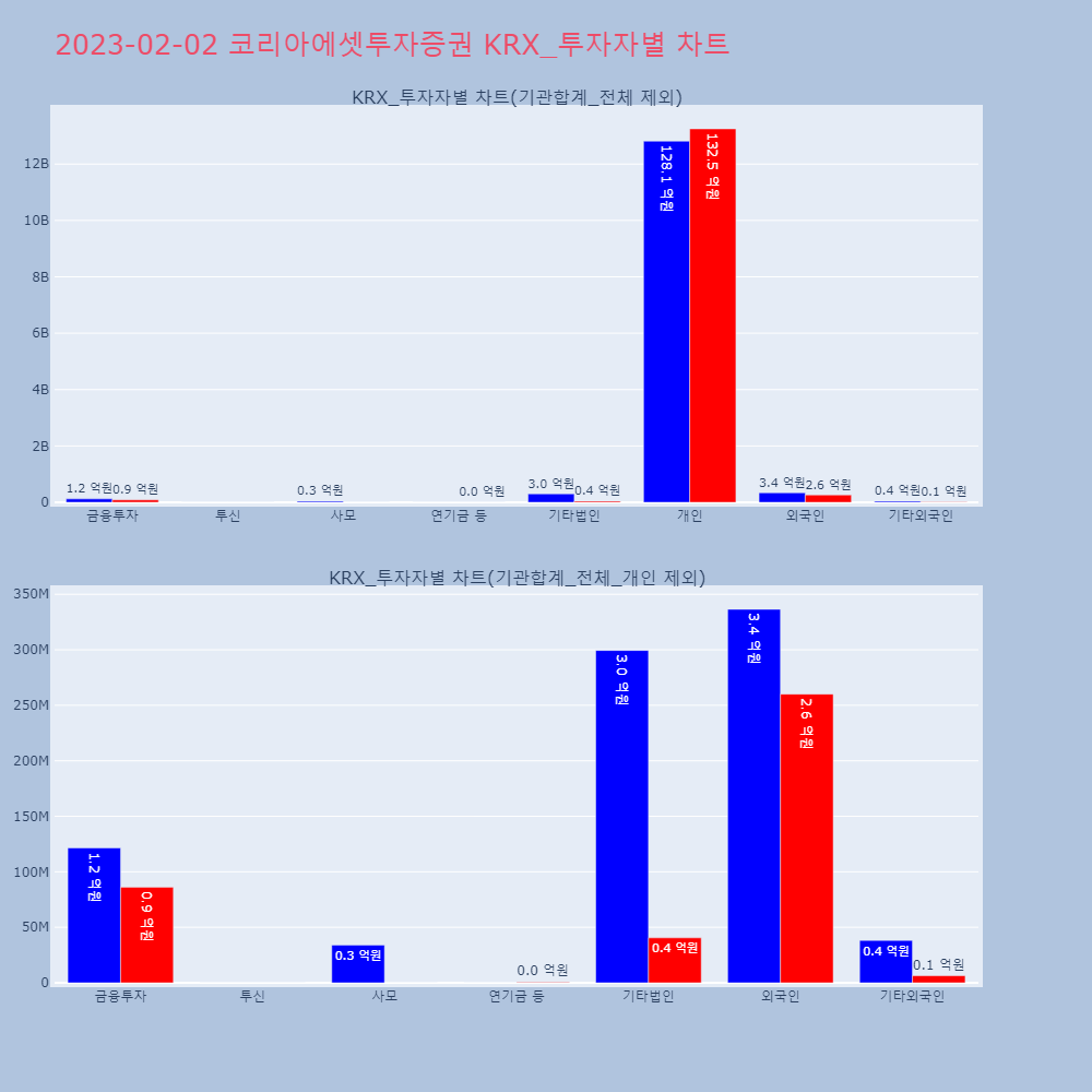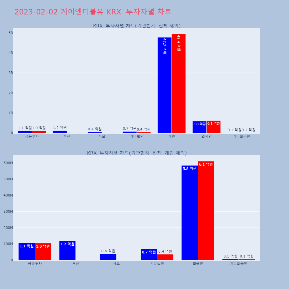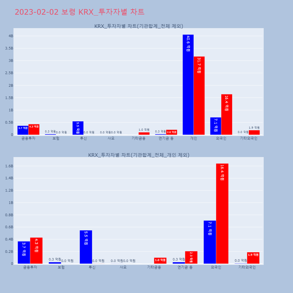| 투자기관 | 거래량_매도 | 거래량_매수 | 거래량_순매수 | 거래대금_매도 | 거래대금_매수 | 거래대금_순매수 |