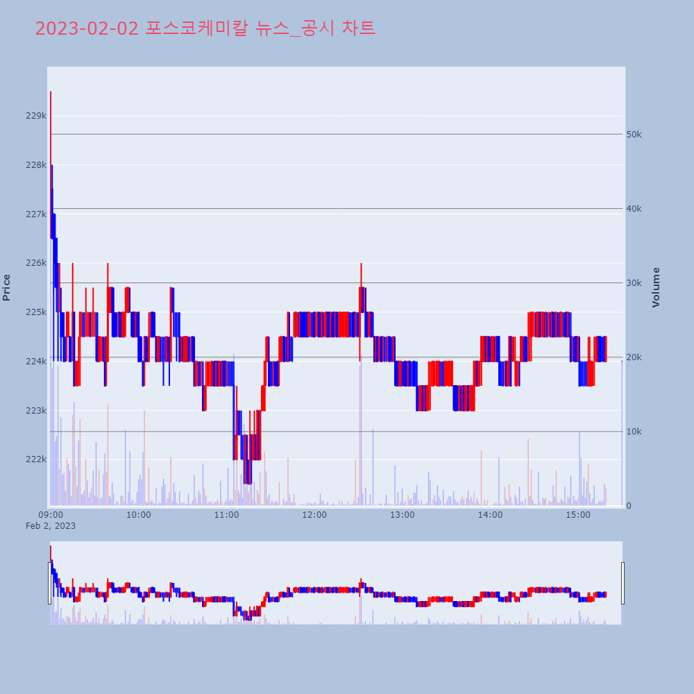 | 3 | 포스코케미칼, 음극재 2단계 공장 착공…생산규모 늘린다- 포항에 연산 1만t 규모 인조흑연 공장 착공- 20 | 이데일리 | 포스코케미칼 | 2023-02-01 09:00:03 |
