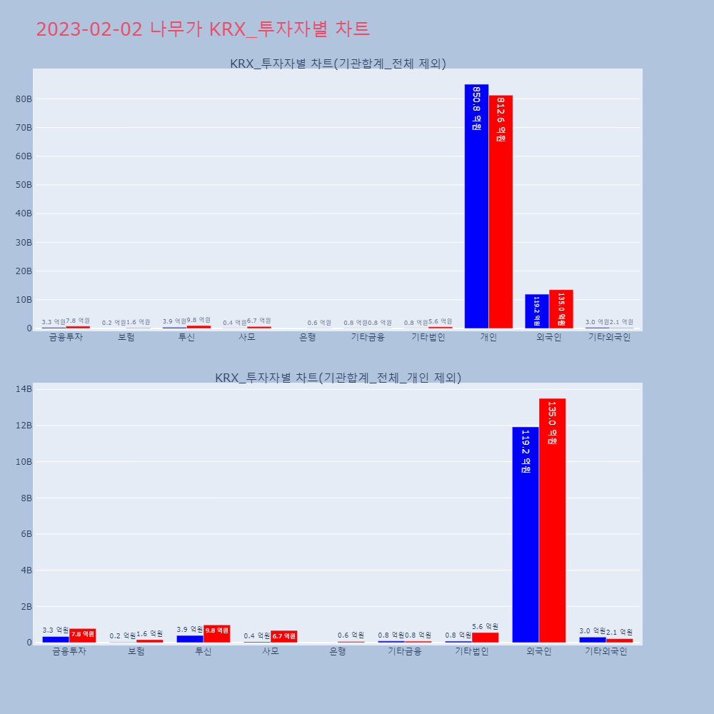 | 투자기관 | 거래량_매도 | 거래량_매수 | 거래량_순매수 | 거래대금_매도 | 거래대금_매수 | 거래대금_순매수 |