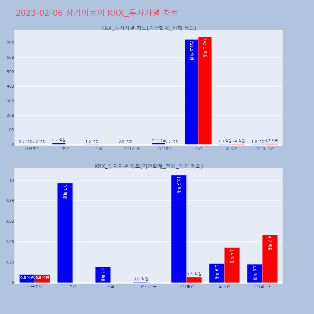 | 외국인 | 93,927 | 99,596 | 5,669 | 7,238,856,500 | 7,660,213,100 | 421,356,600 |