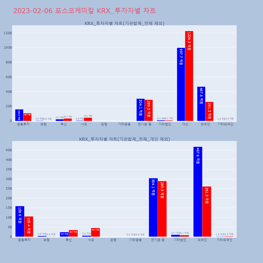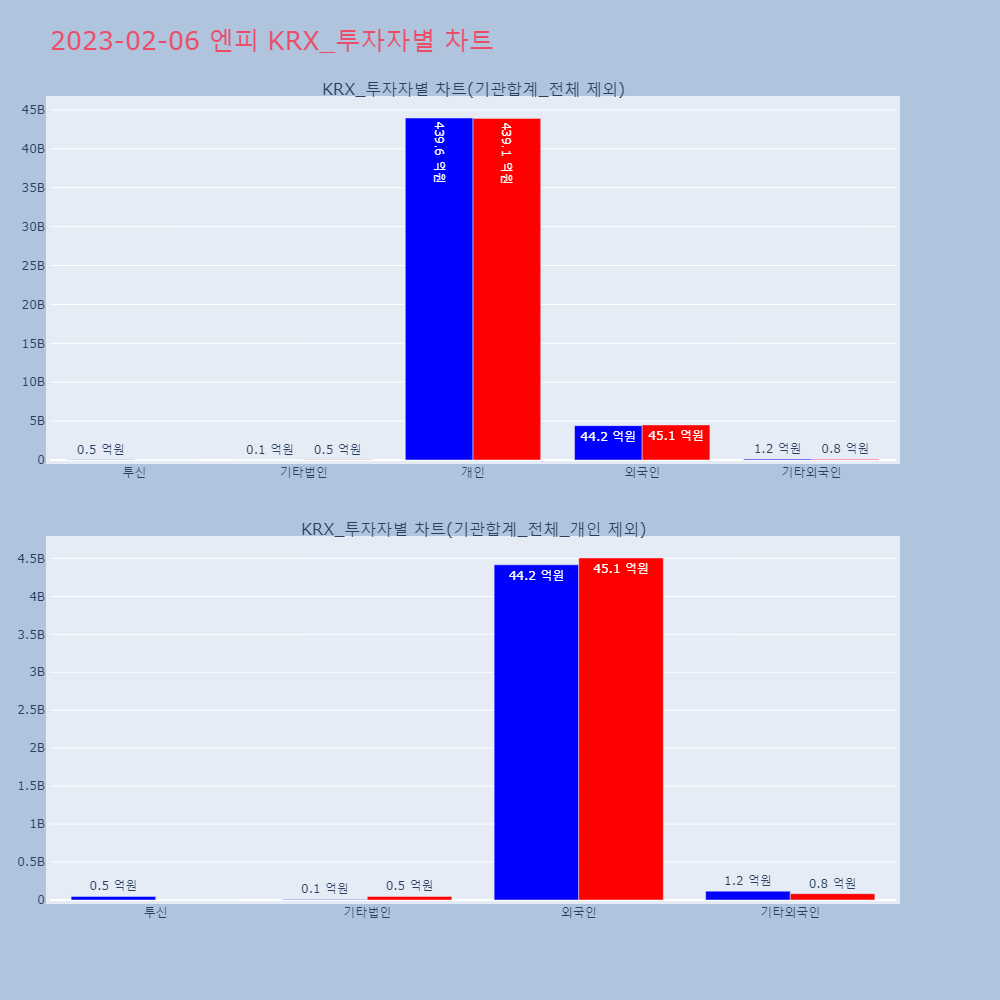 | 연기금 등 | 256,876 | 44,418 | -212,458 | 6,883,319,650 | 1,192,384,600 | -5,690,935,050 |