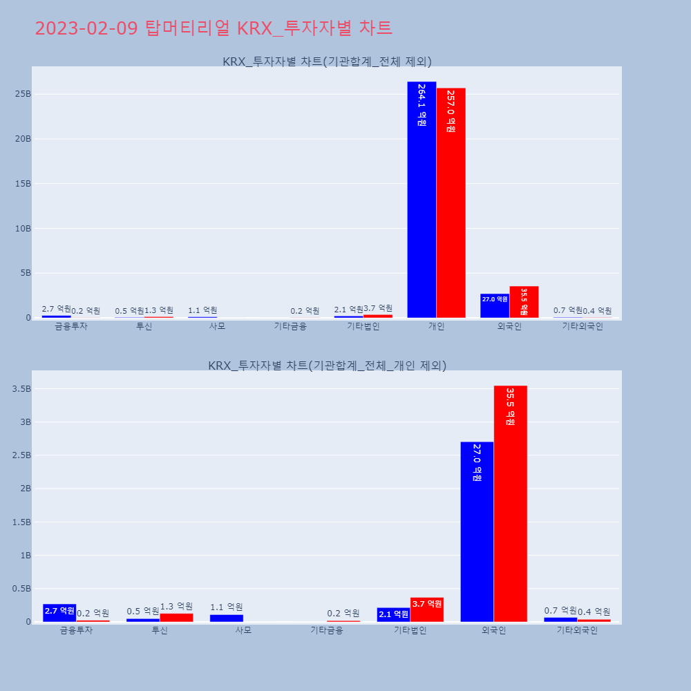 | 투자기관 | 거래량_매도 | 거래량_매수 | 거래량_순매수 | 거래대금_매도 | 거래대금_매수 | 거래대금_순매수 |