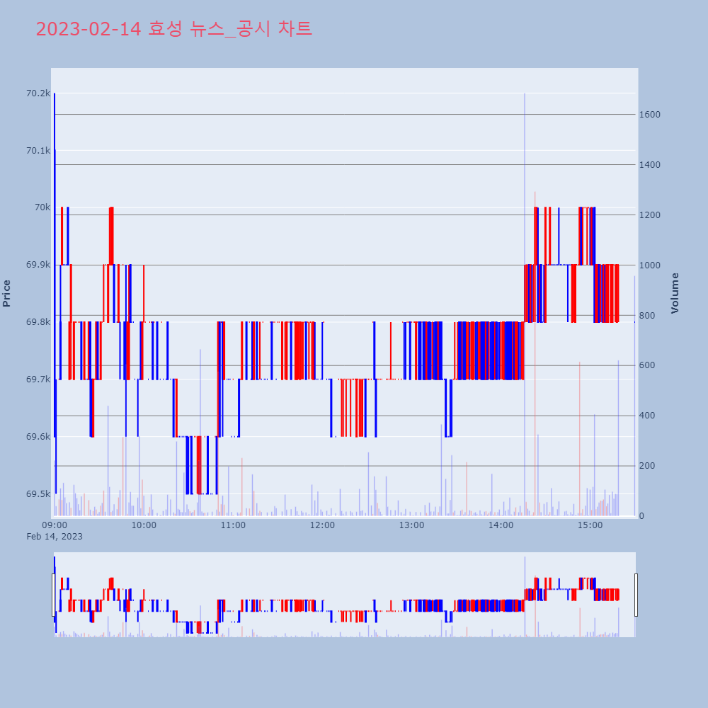 | 8 | 휴스틸, +12.38% VI 발동휴스틸이 VI가 발동했다. 전일 대비 12.38% 상승 | 조선경제 | 휴스틸 | 2023-02-14 12:57:40 |