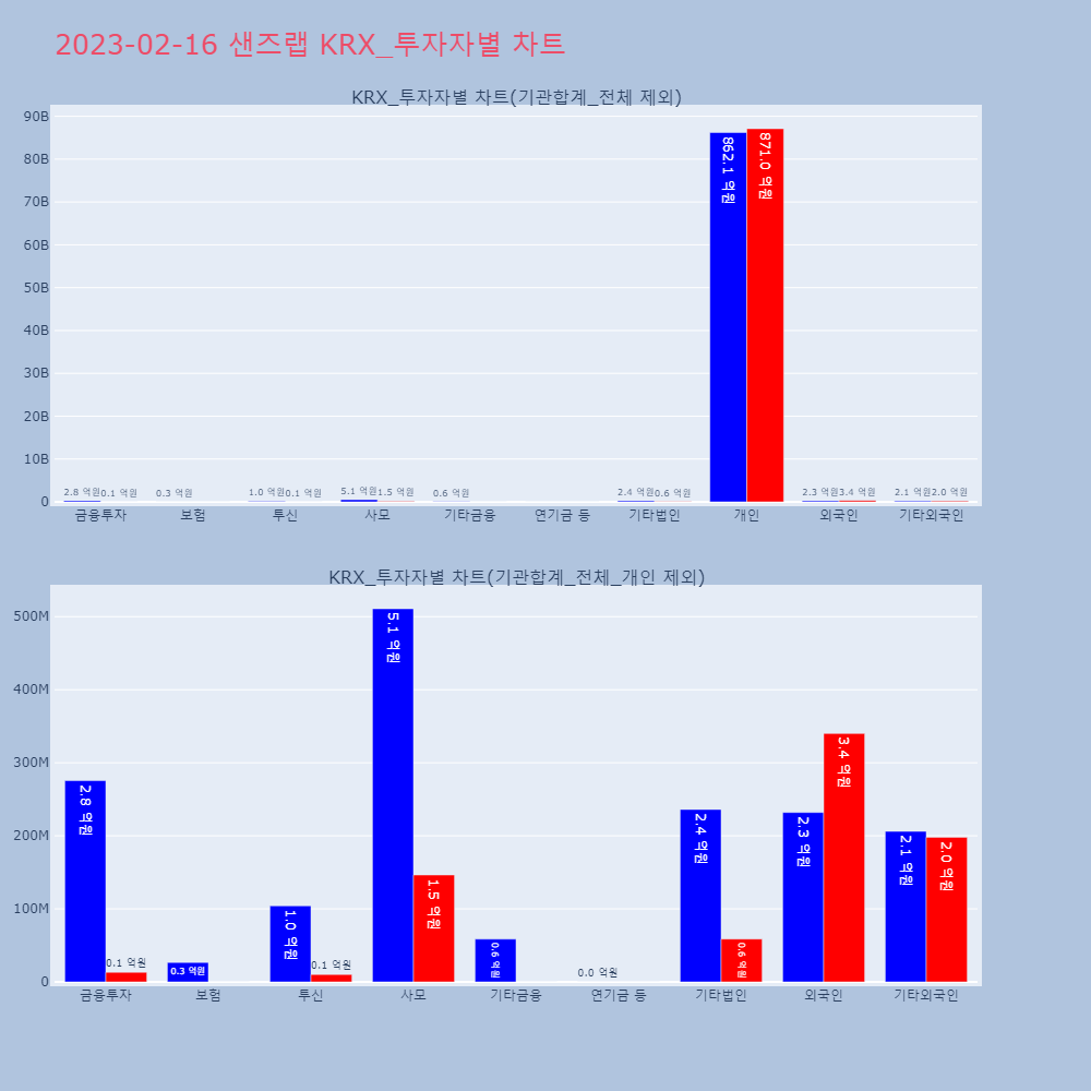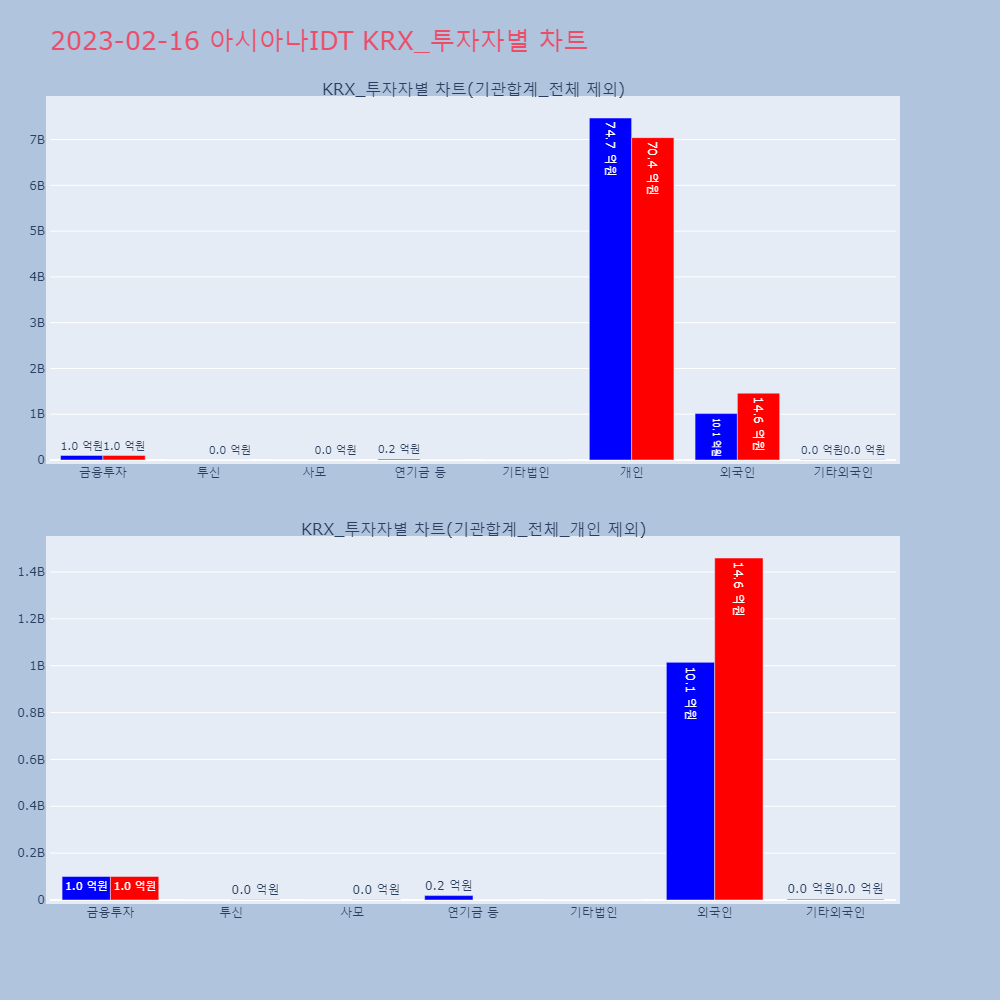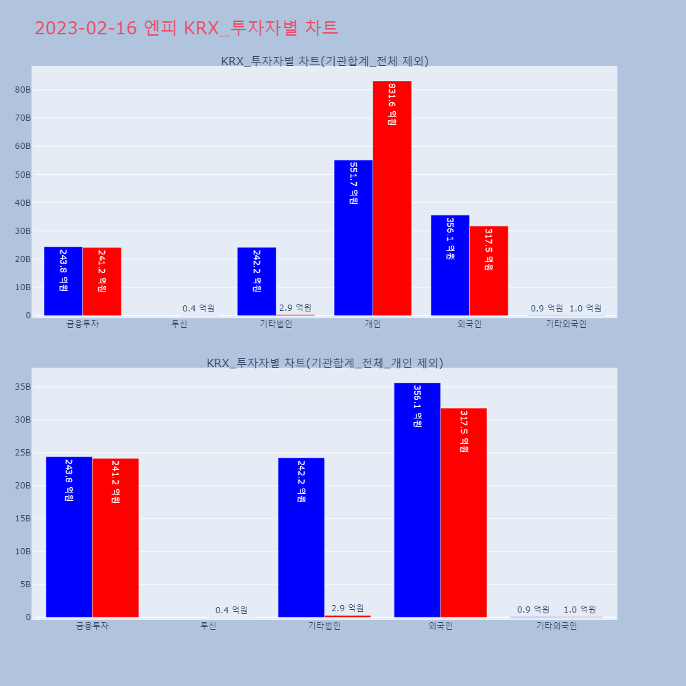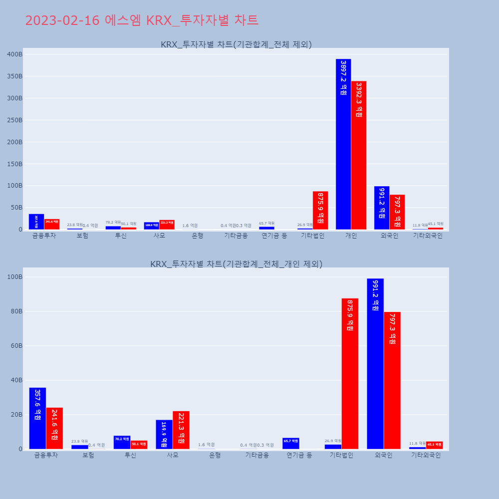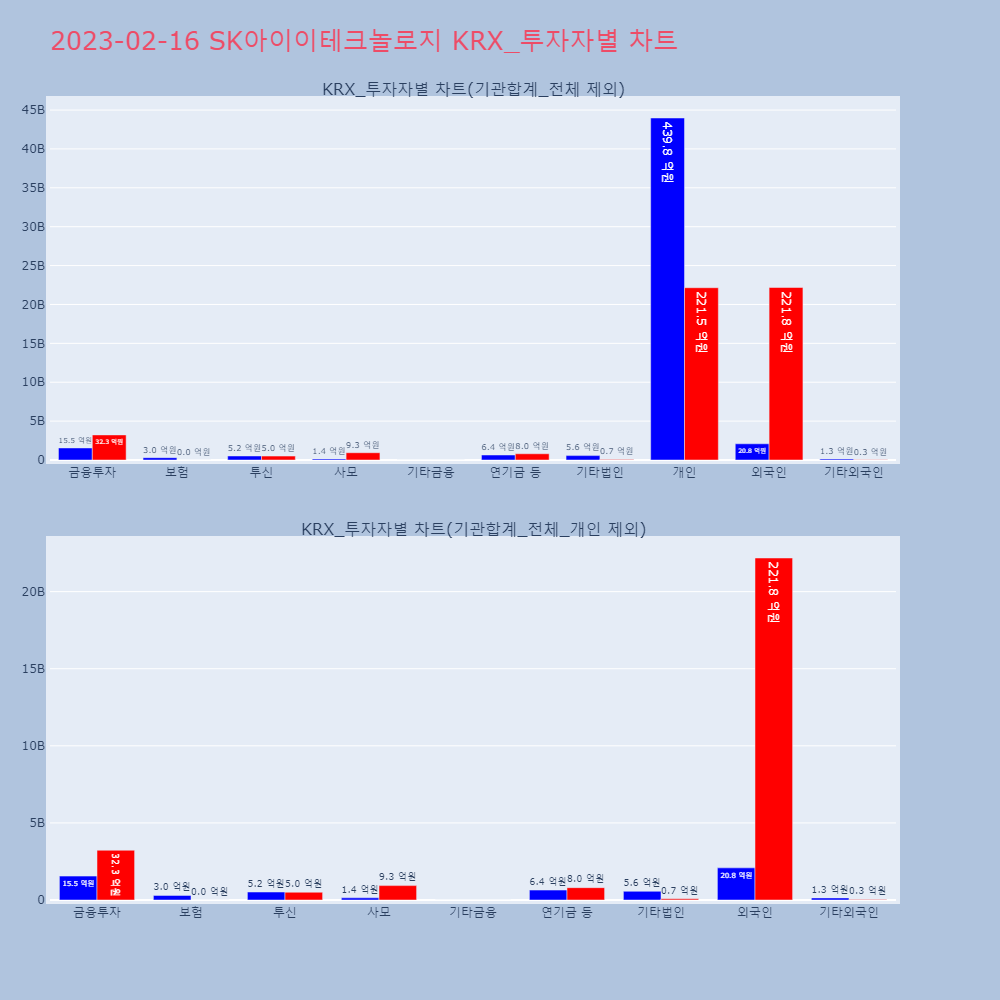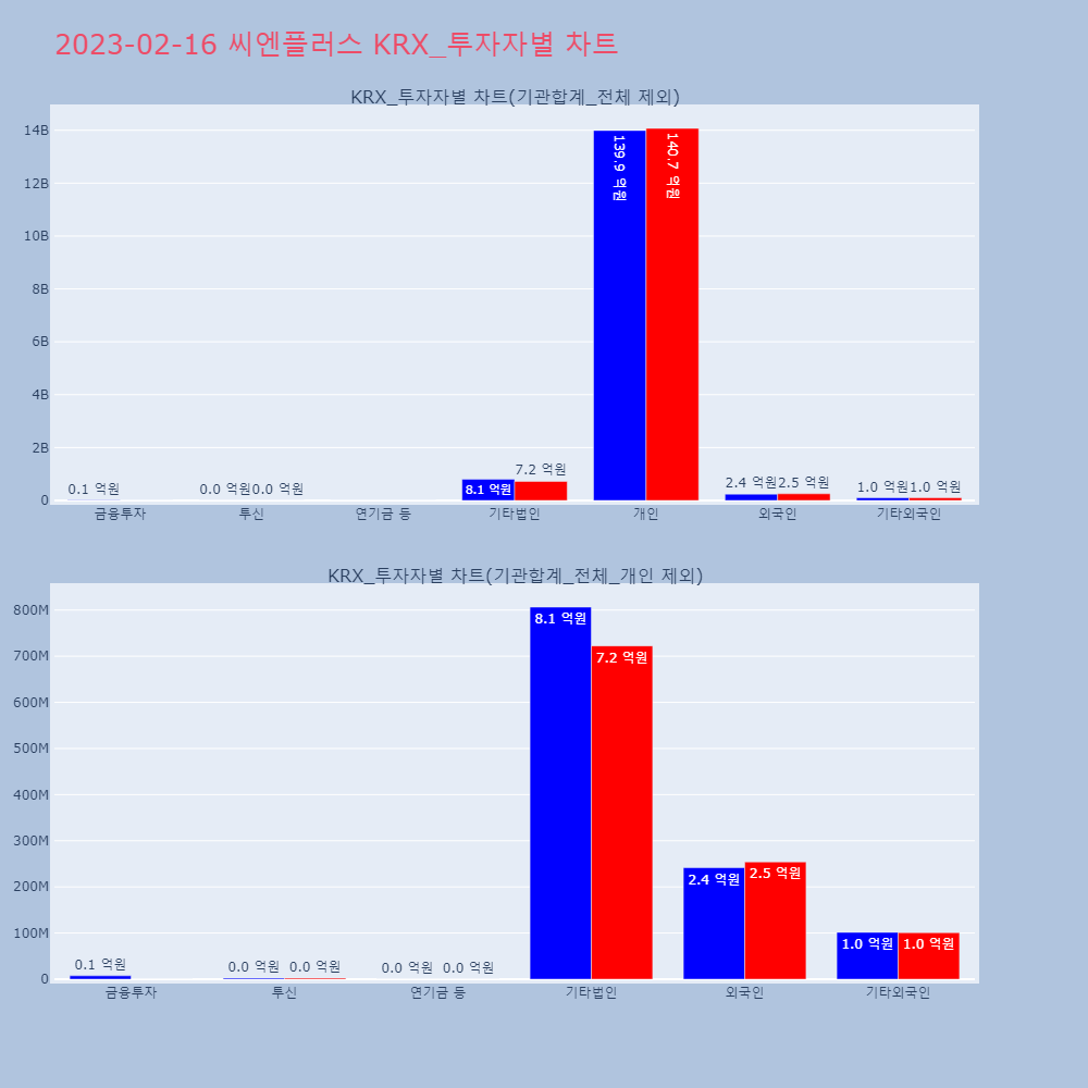 | 기타외국인 | 22,916 | 2,463 | -20,453 | 1,453,583,500 | 156,235,200 | -1,297,348,300 |