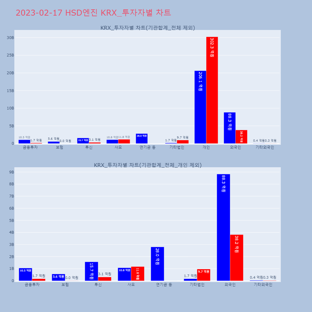 | 기관합계 | 207,637 | 107,277 | -100,360 | 46,810,175,500 | 24,249,475,500 | -22,560,700,000 |