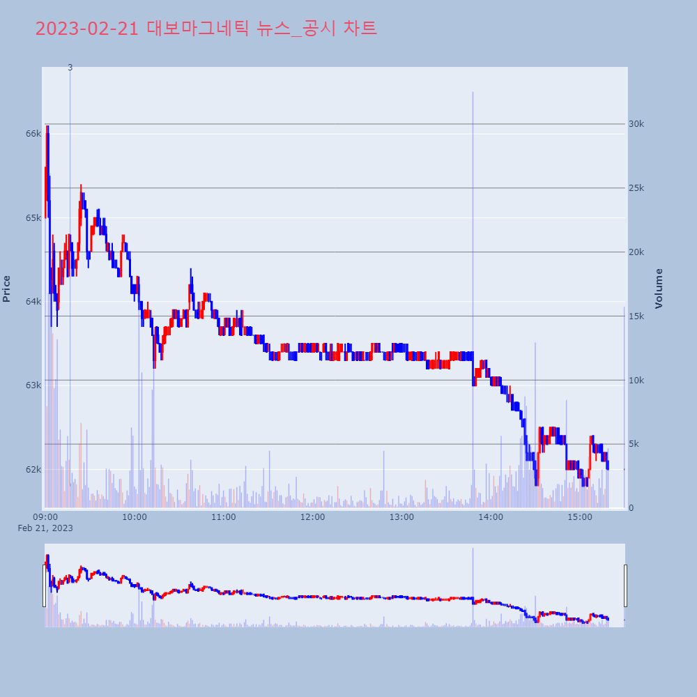 | 3 | 카나리아바이오, +12.34% VI 발동카나리아바이오가 VI가 발동했다. 전일 대비 12.34 | 조선경제 | 카나리아바이오 | 2023-02-20 11:08:55 |