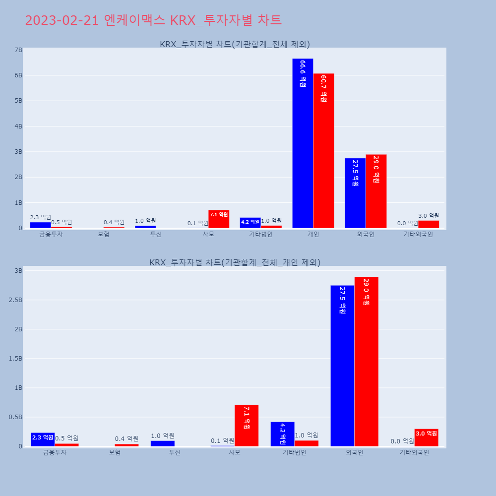| 투자기관 | 거래량_매도 | 거래량_매수 | 거래량_순매수 | 거래대금_매도 | 거래대금_매수 | 거래대금_순매수 |