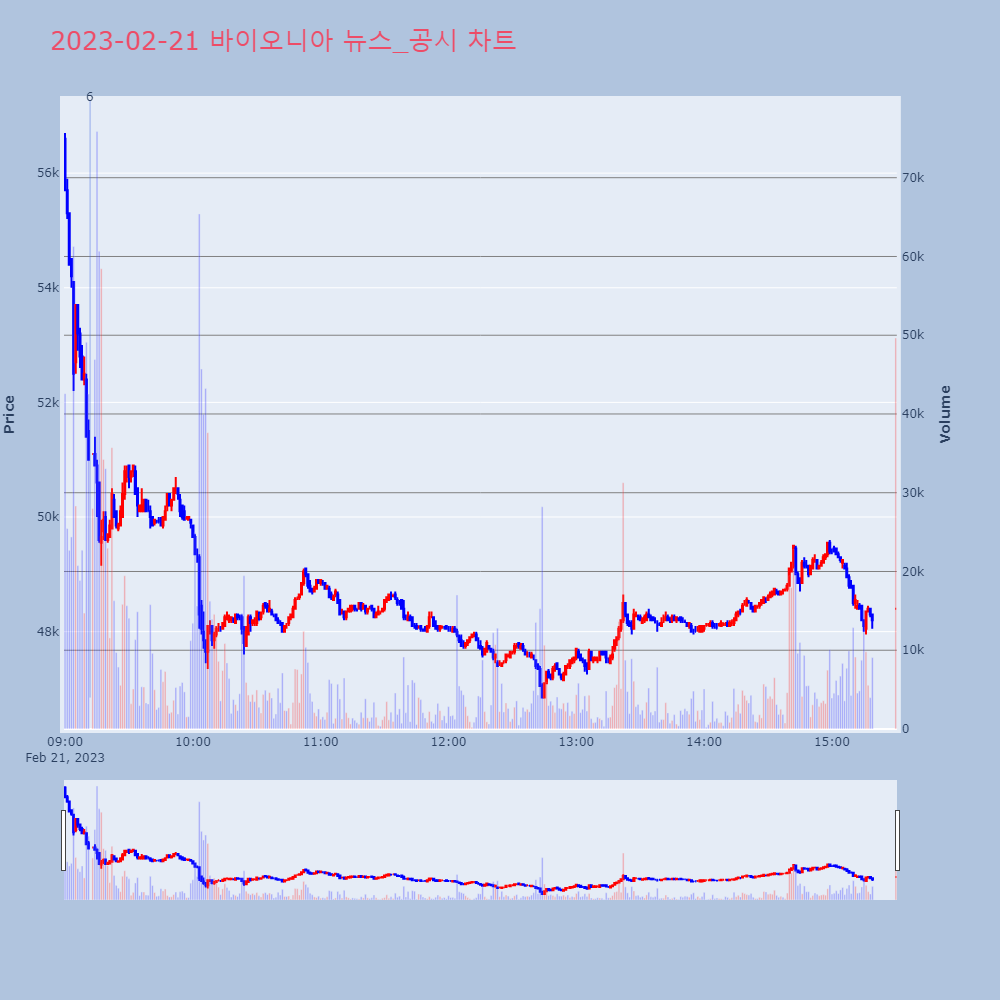 | 6 | 바이오니아, -8.44% VI 발동바이오니아가 VI가 발동했다. 전일 대비 8.44% 하 | 조선경제 | 바이오니아 | 2023-02-21 09:11:45 |