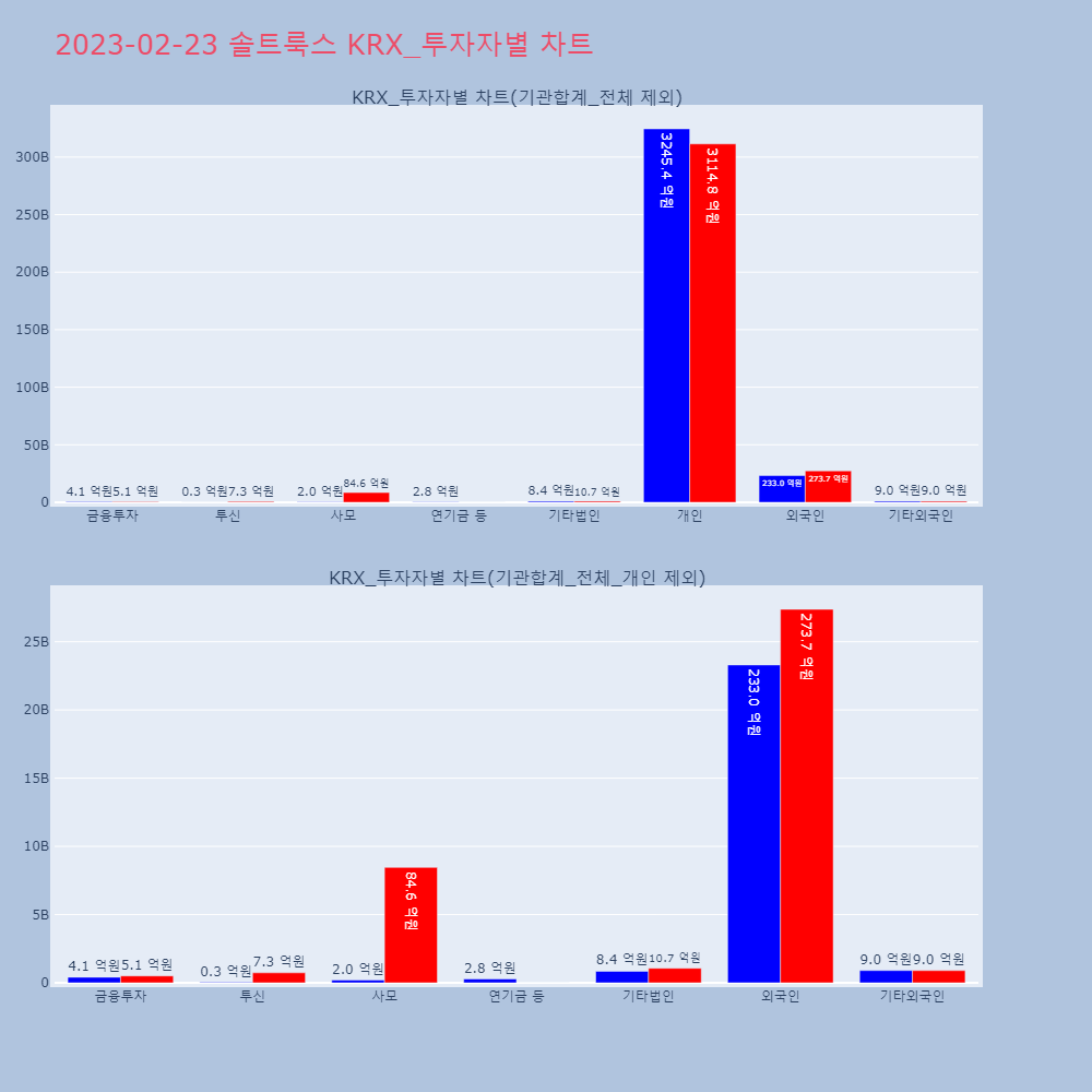 | 투자기관 | 거래량_매도 | 거래량_매수 | 거래량_순매수 | 거래대금_매도 | 거래대금_매수 | 거래대금_순매수 |