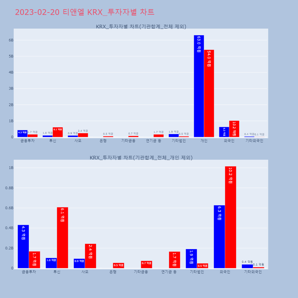 | 투자기관 | 거래량_매도 | 거래량_매수 | 거래량_순매수 | 거래대금_매도 | 거래대금_매수 | 거래대금_순매수 |