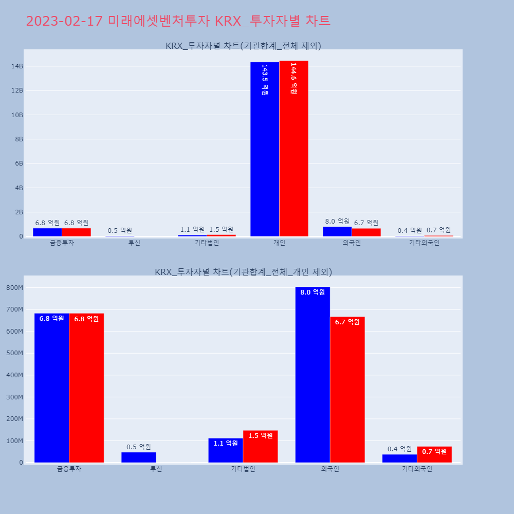 | 금융투자 | 65,263 | 36,312 | -28,951 | 22,009,509,000 | 12,180,461,500 | -9,829,047,500 |