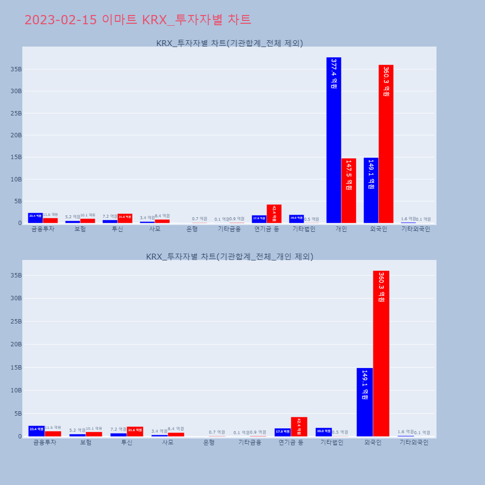 | 투자기관 | 거래량_매도 | 거래량_매수 | 거래량_순매수 | 거래대금_매도 | 거래대금_매수 | 거래대금_순매수 |