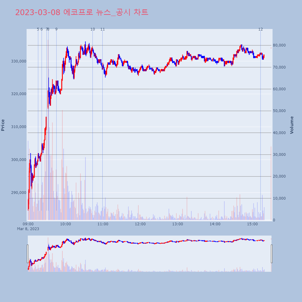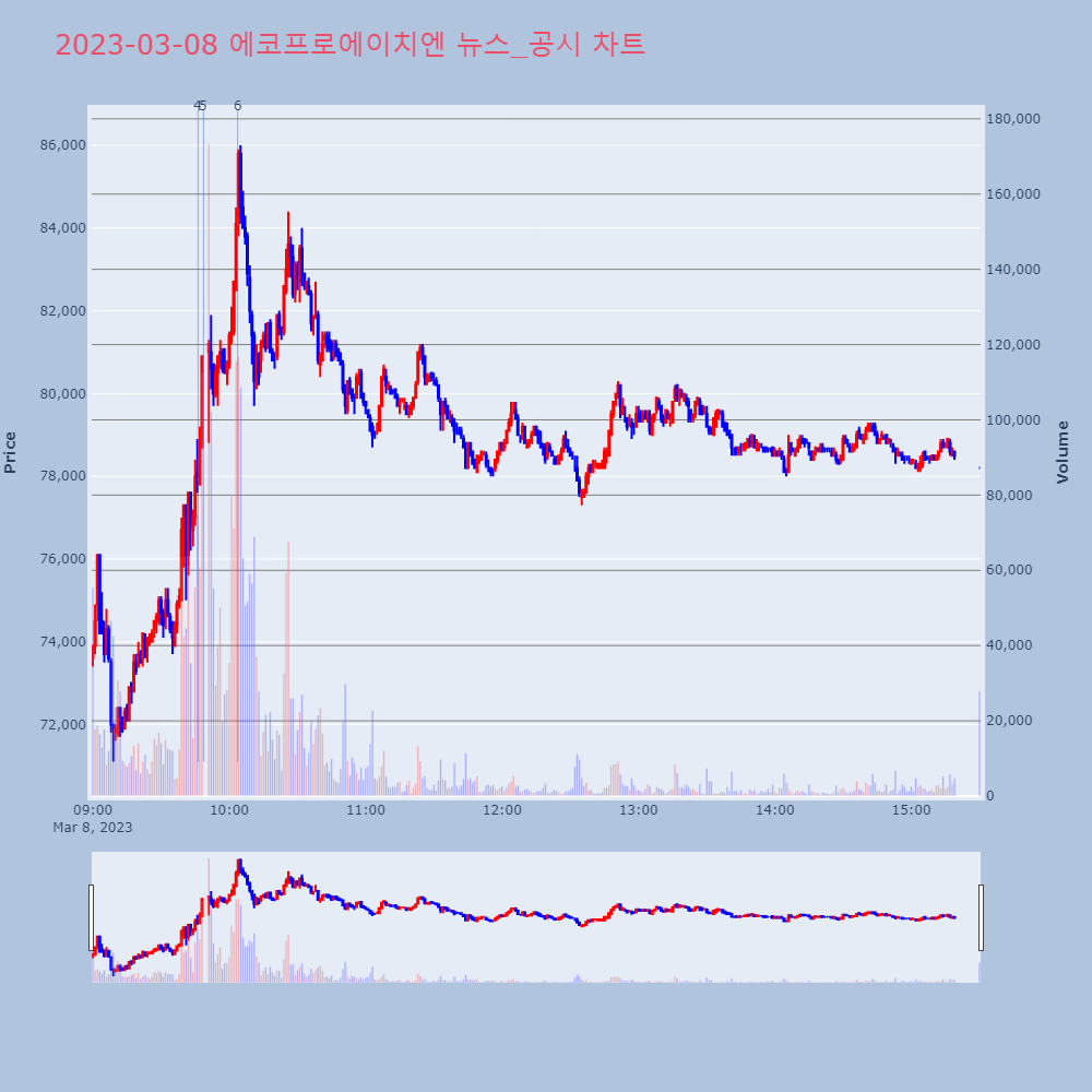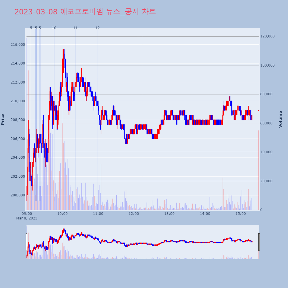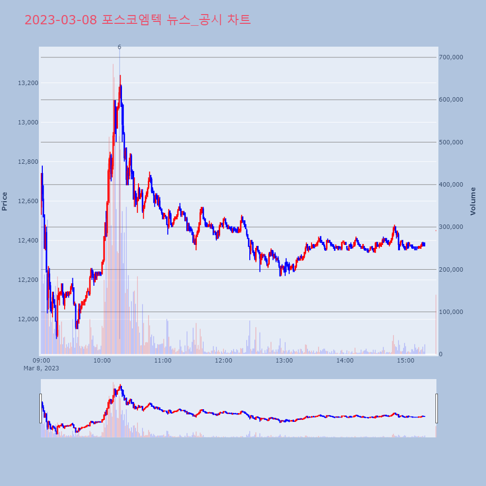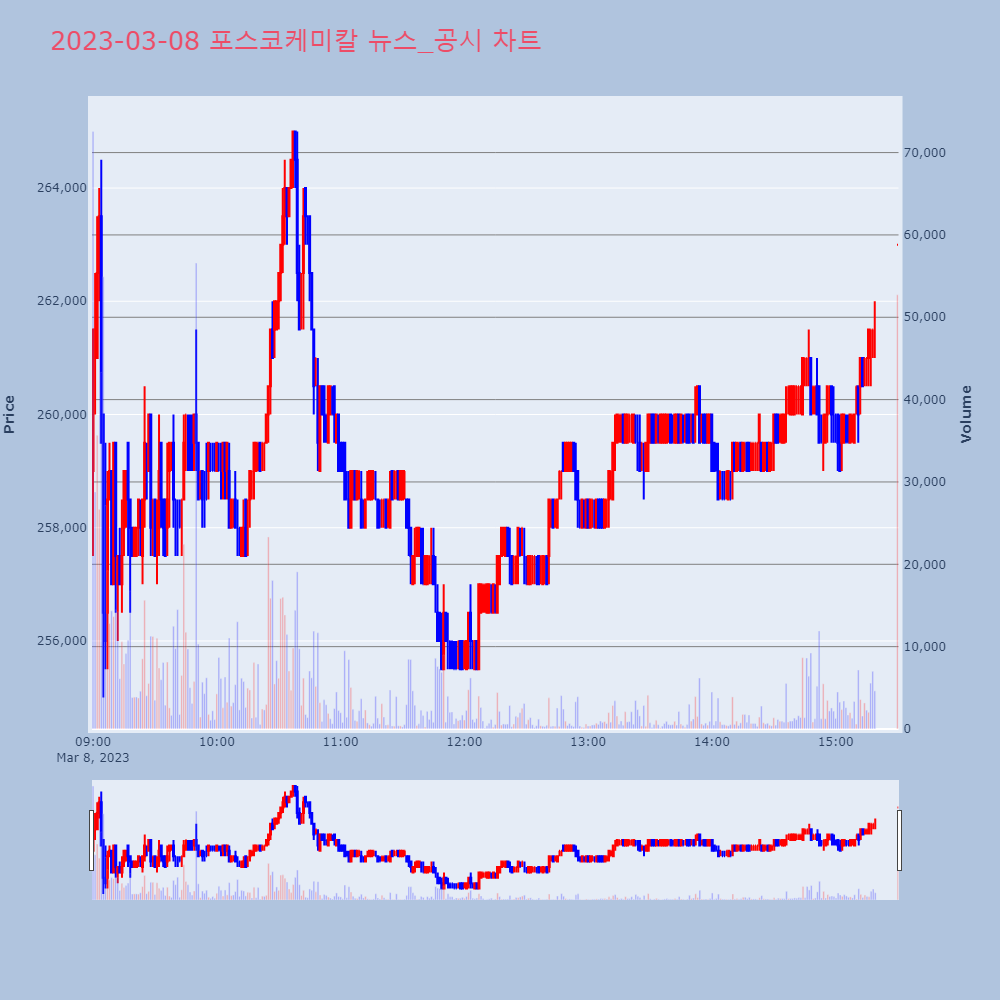 | 4 | 포스코케미칼, +8.53% VI 발동포스코케미칼이 VI가 발동했다. 전일 대비 8.53% | 조선경제 | 포스코케미칼 | 2023-03-07 09:13:55 |