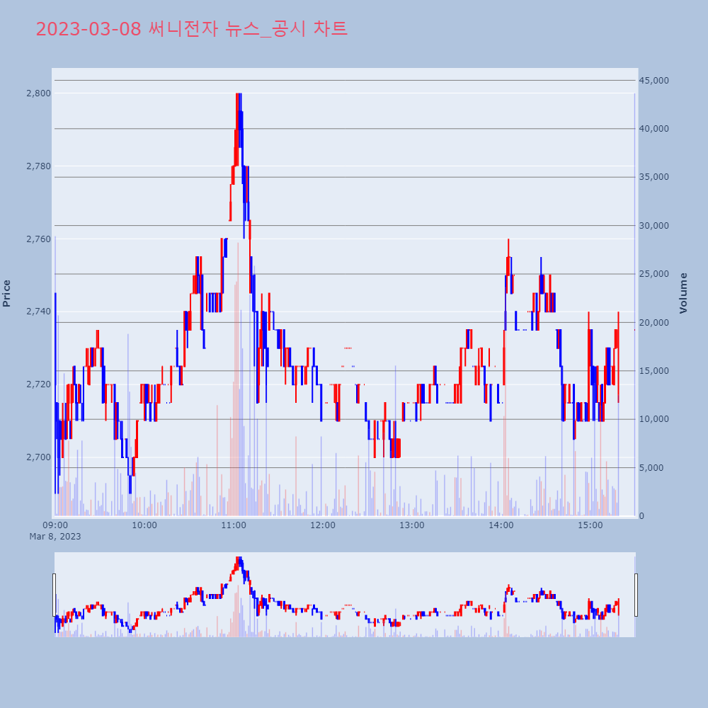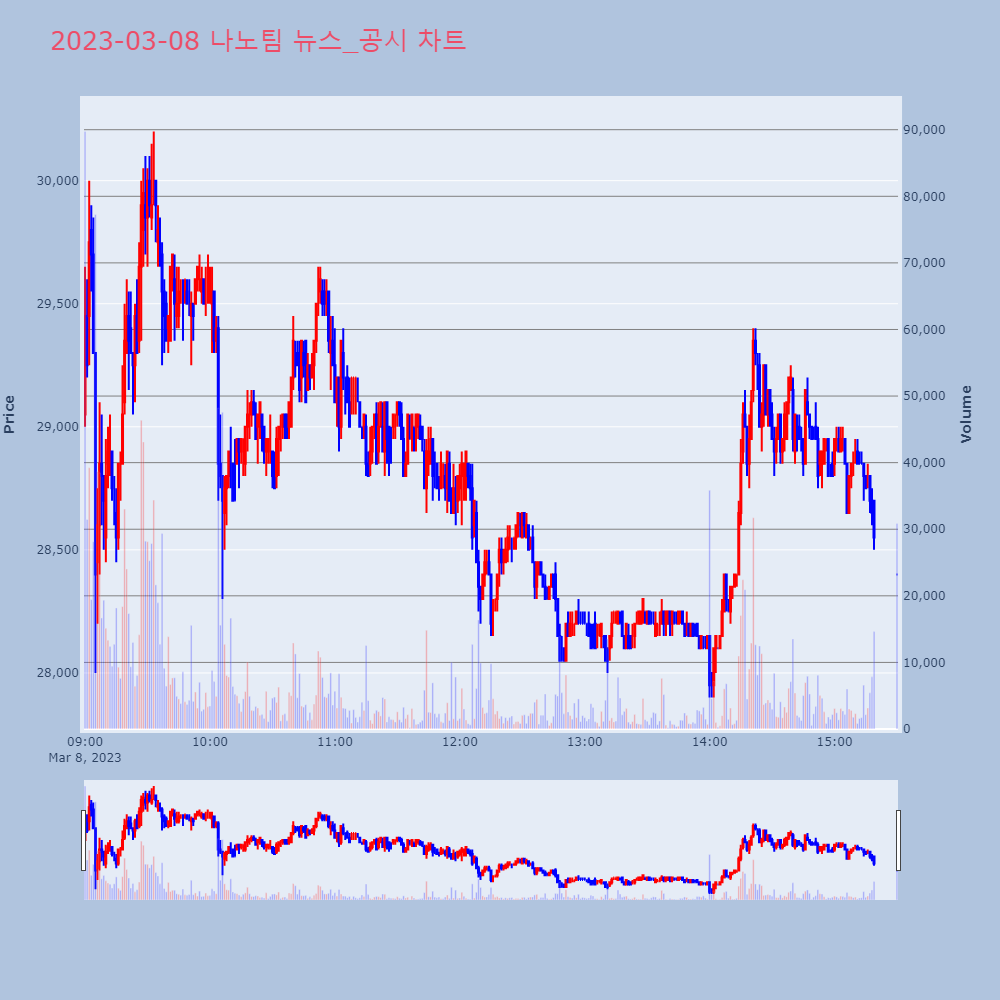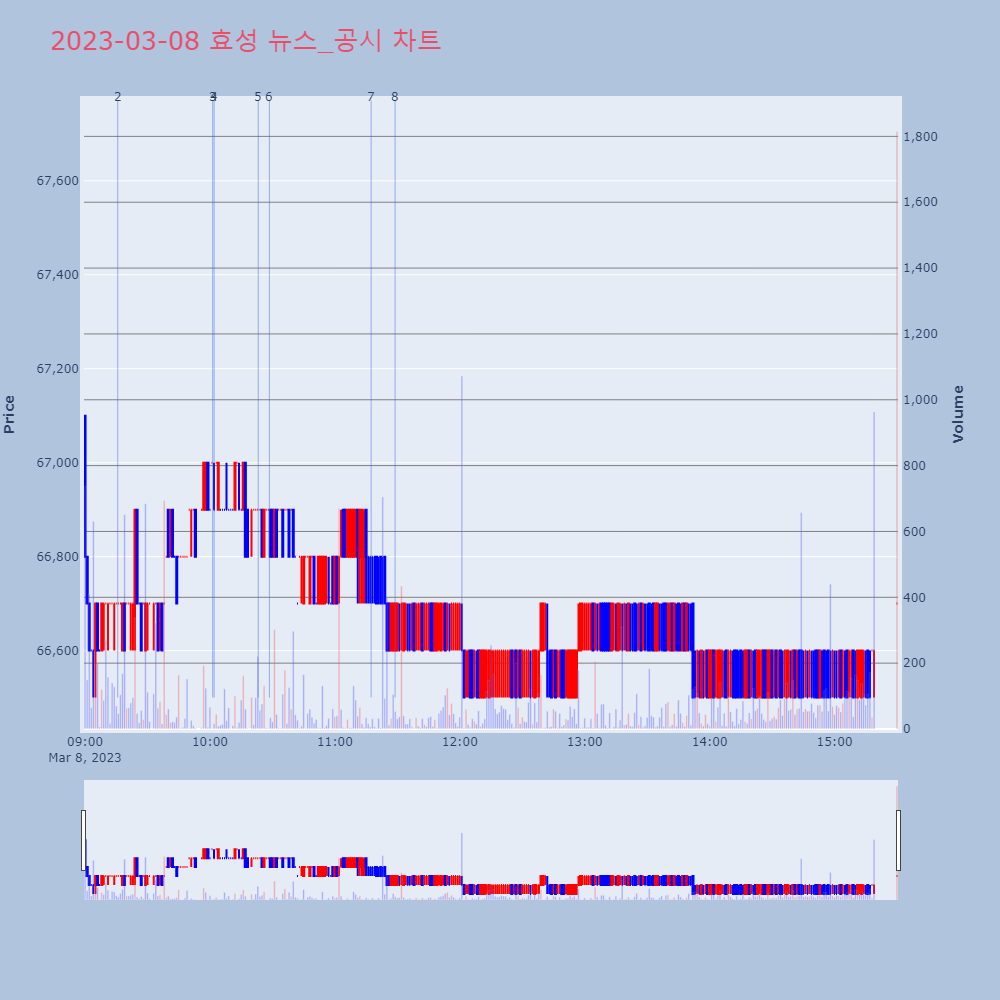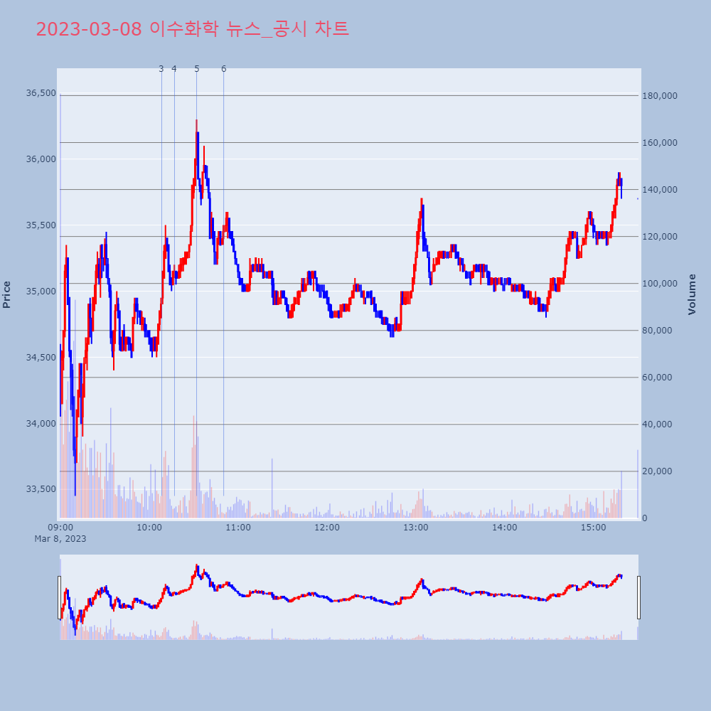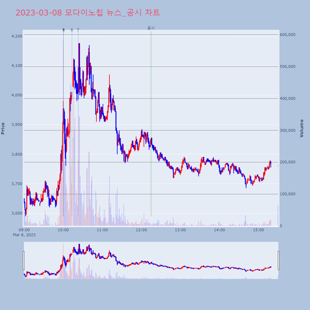 | 4 | 포스코케미칼, +8.53% VI 발동포스코케미칼이 VI가 발동했다. 전일 대비 8.53% | 조선경제 | 포스코케미칼 | 2023-03-07 09:13:55 |