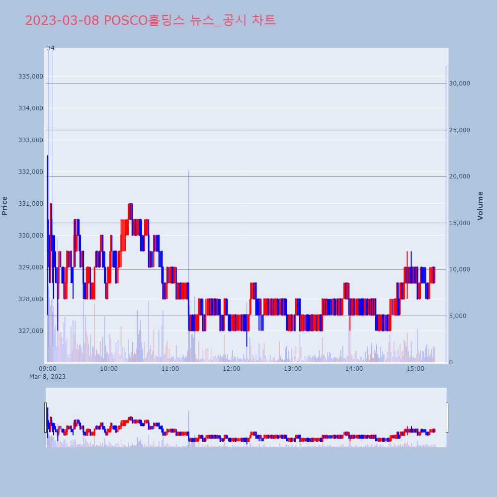 | 2 | [업종 대표주] 철강: POSCO홀딩스 +2.43% 출발철강 업종 대표주인 POSCO홀딩스가 2.43% 상승한 | 조선경제 | POSCO홀딩스 | 2023-03-07 09:05:10 |