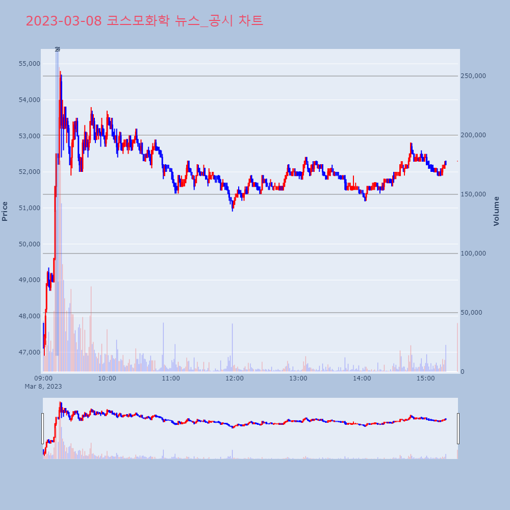 | 1 | 포스코케미칼, +4.05% 52주 신고가포스코케미칼이 52주 신고가를 경신했다. 전일 대비 4 | 조선경제 | 포스코케미칼 | 2023-03-07 09:06:11 |