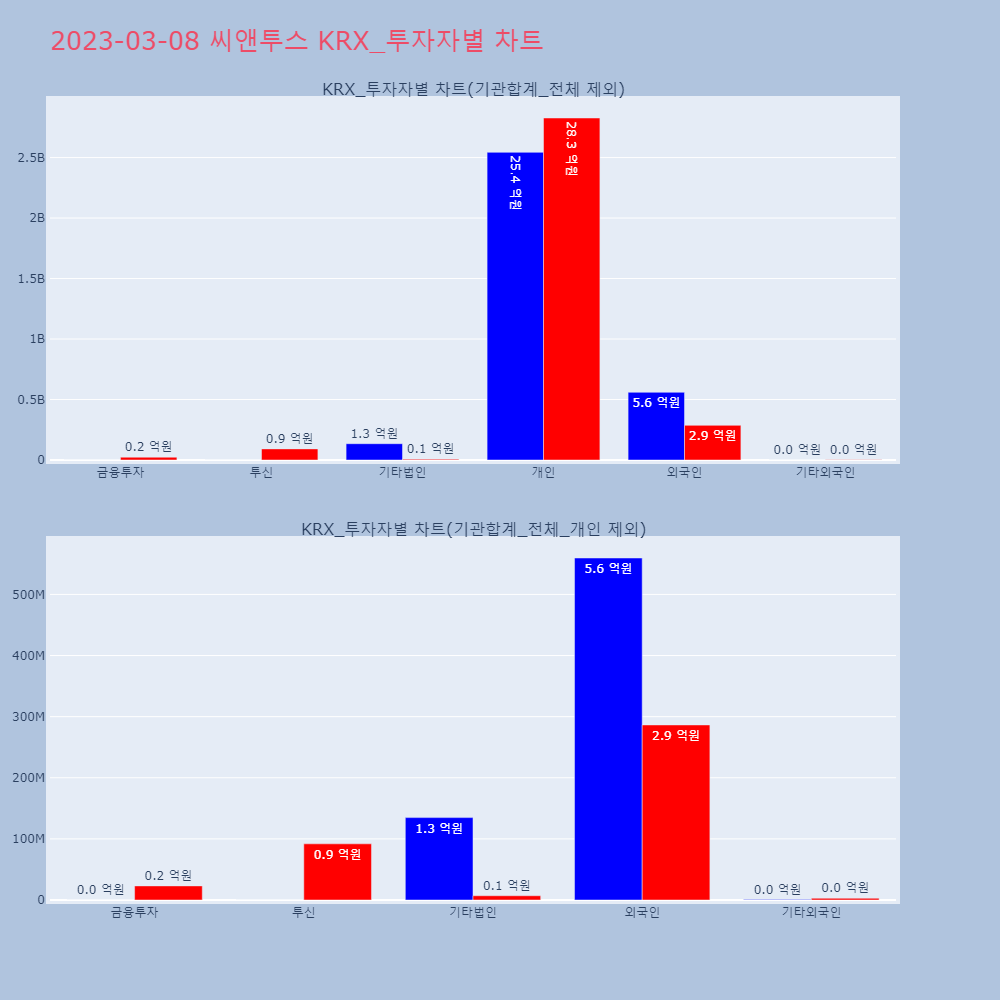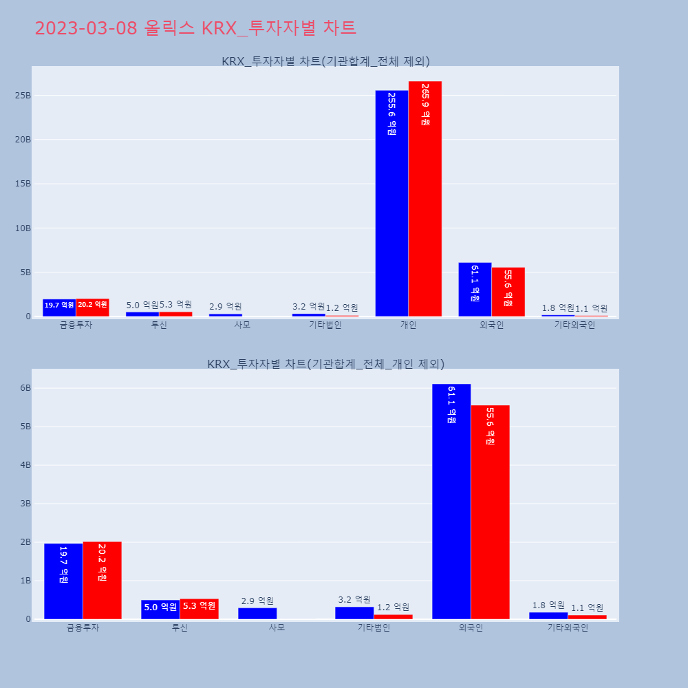 | 투자기관 | 거래량_매도 | 거래량_매수 | 거래량_순매수 | 거래대금_매도 | 거래대금_매수 | 거래대금_순매수 |