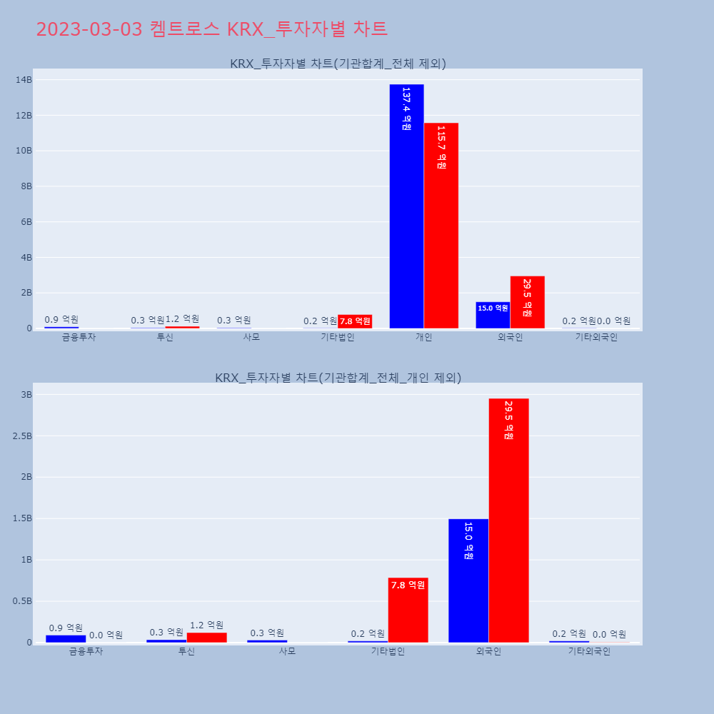 | 사모 | 87,703 | 74,732 | -12,971 | 18,181,446,500 | 15,442,284,900 | -2,739,161,600 |