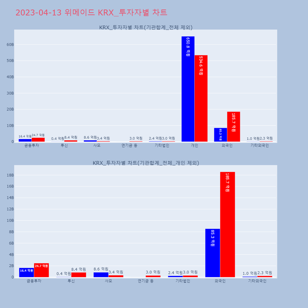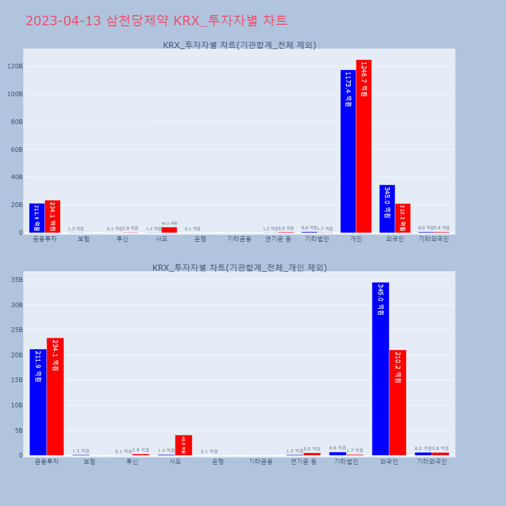 | 투자기관 | 매도량/금액(백) | 매수량/금액(백) | 순매수량/금액(백) |